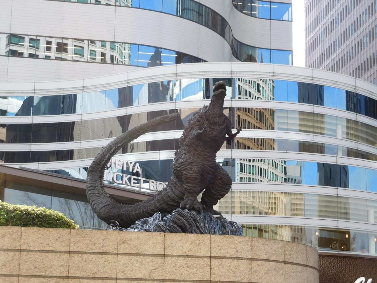 東京ミッドタウン日比谷にも近い、日比谷シャンテ前にある「ゴジラ像」です。開けた場所に設置され、上に向かって叫んでいるような姿が見れます。ある意味とてもシンプルなゴジラ像で、クリスマスの時期にも関わらず、特に変わった変化はありませんでした。(サンタ帽でも被っているかとちょっと期待してしまいましたが、いつも通りの姿でした。)
