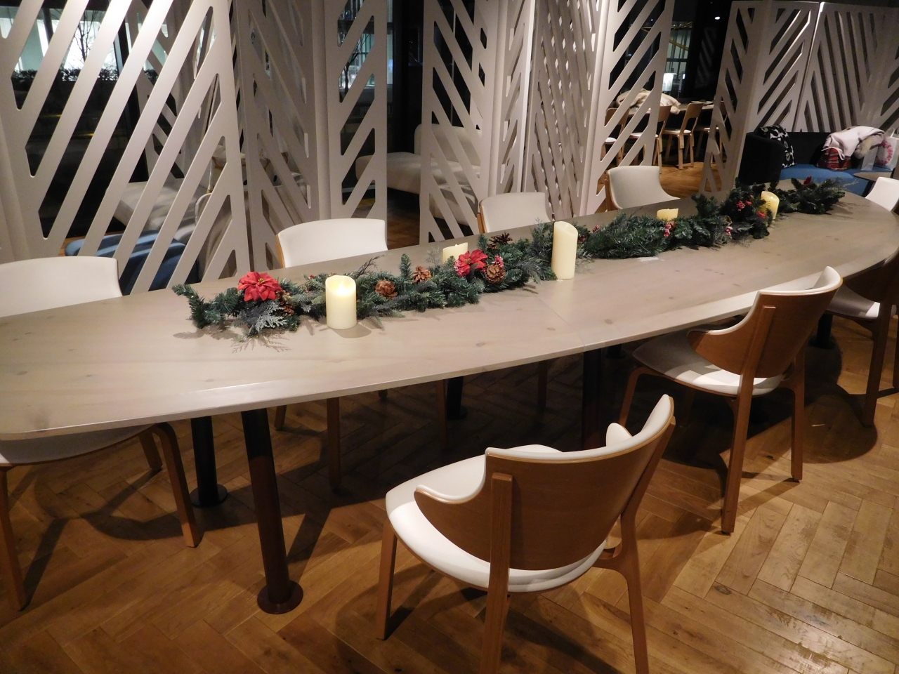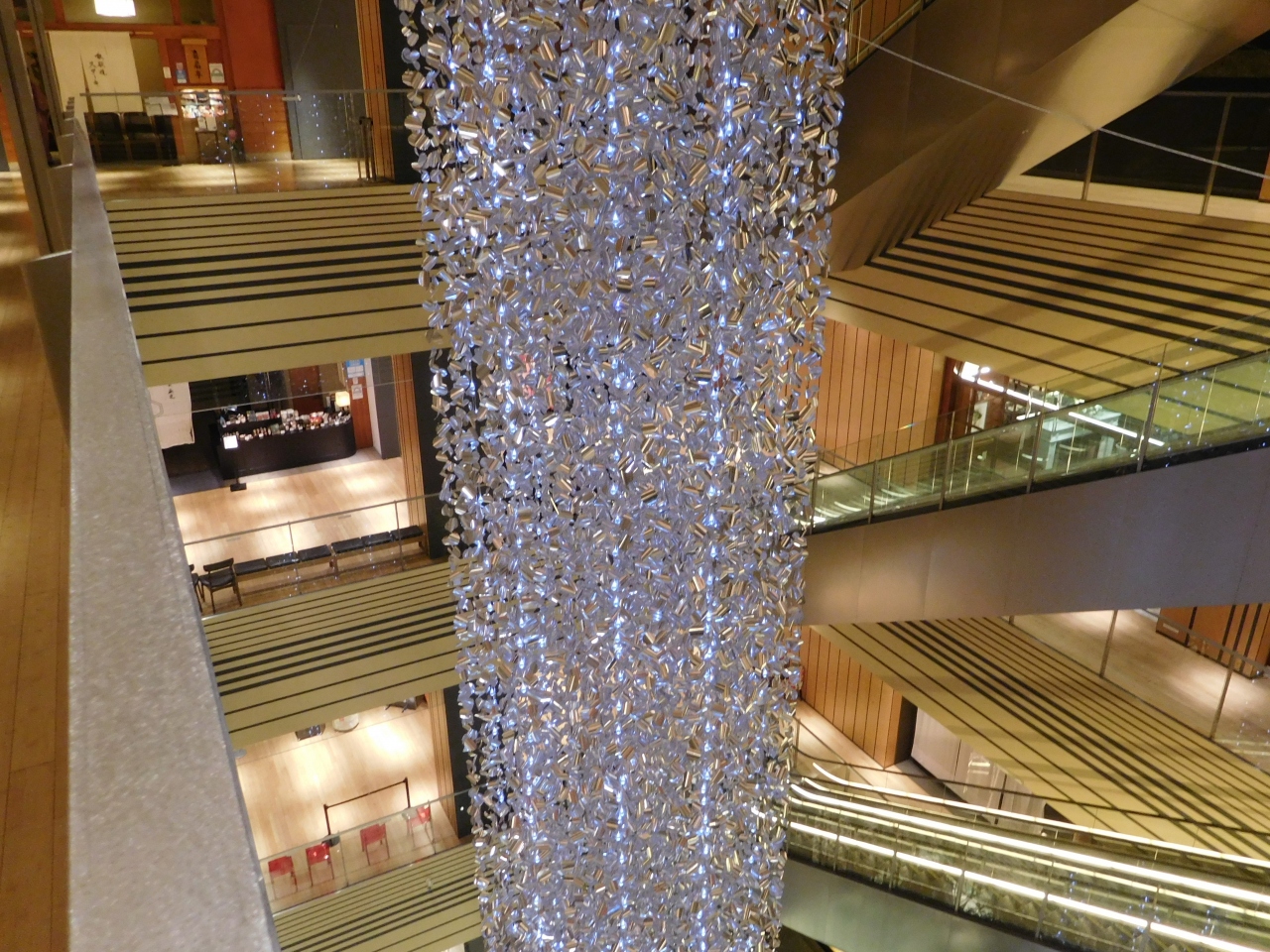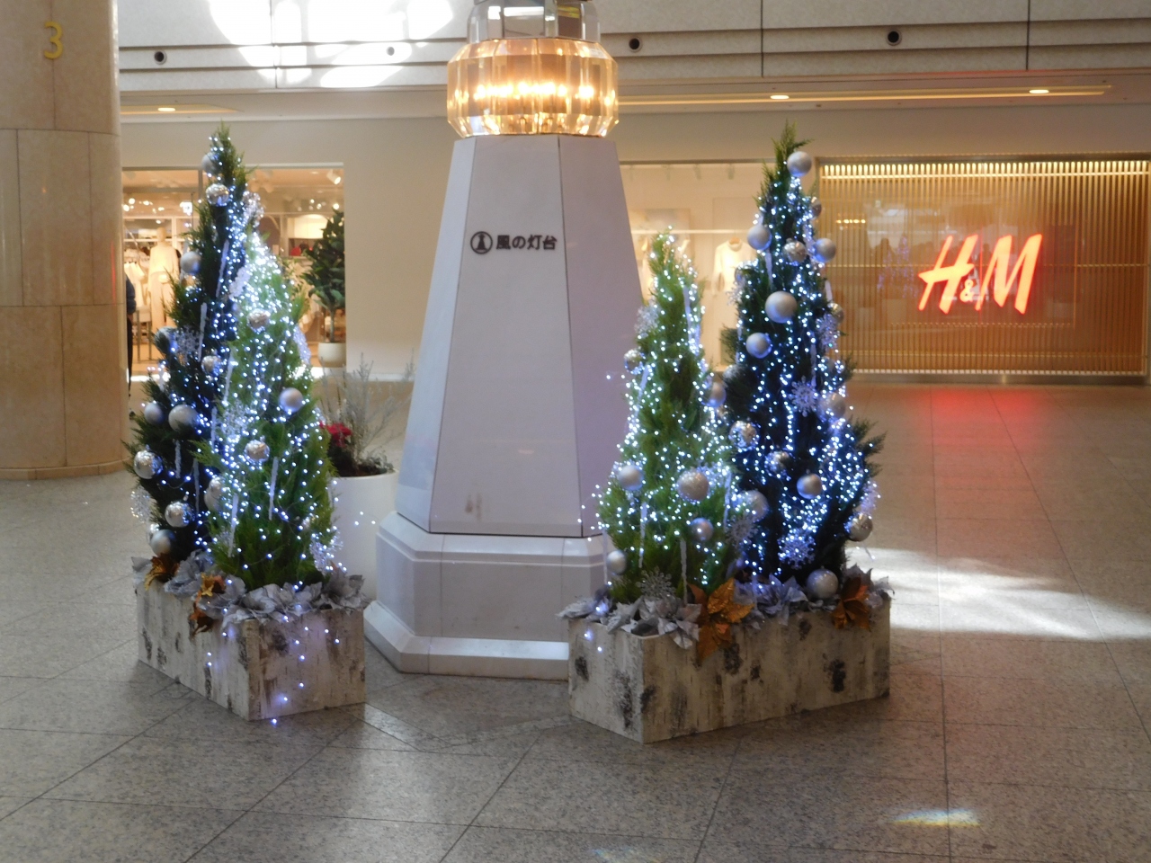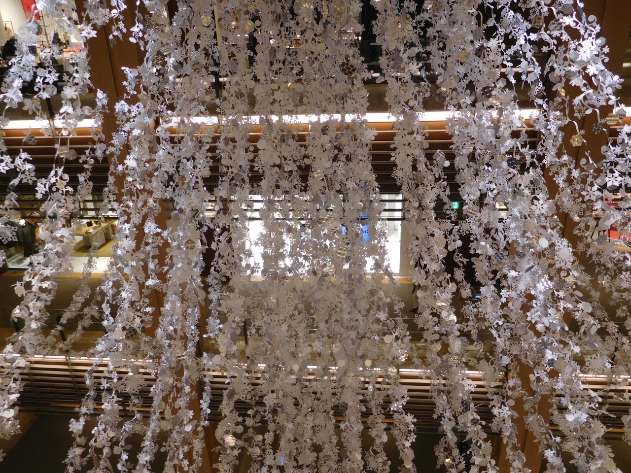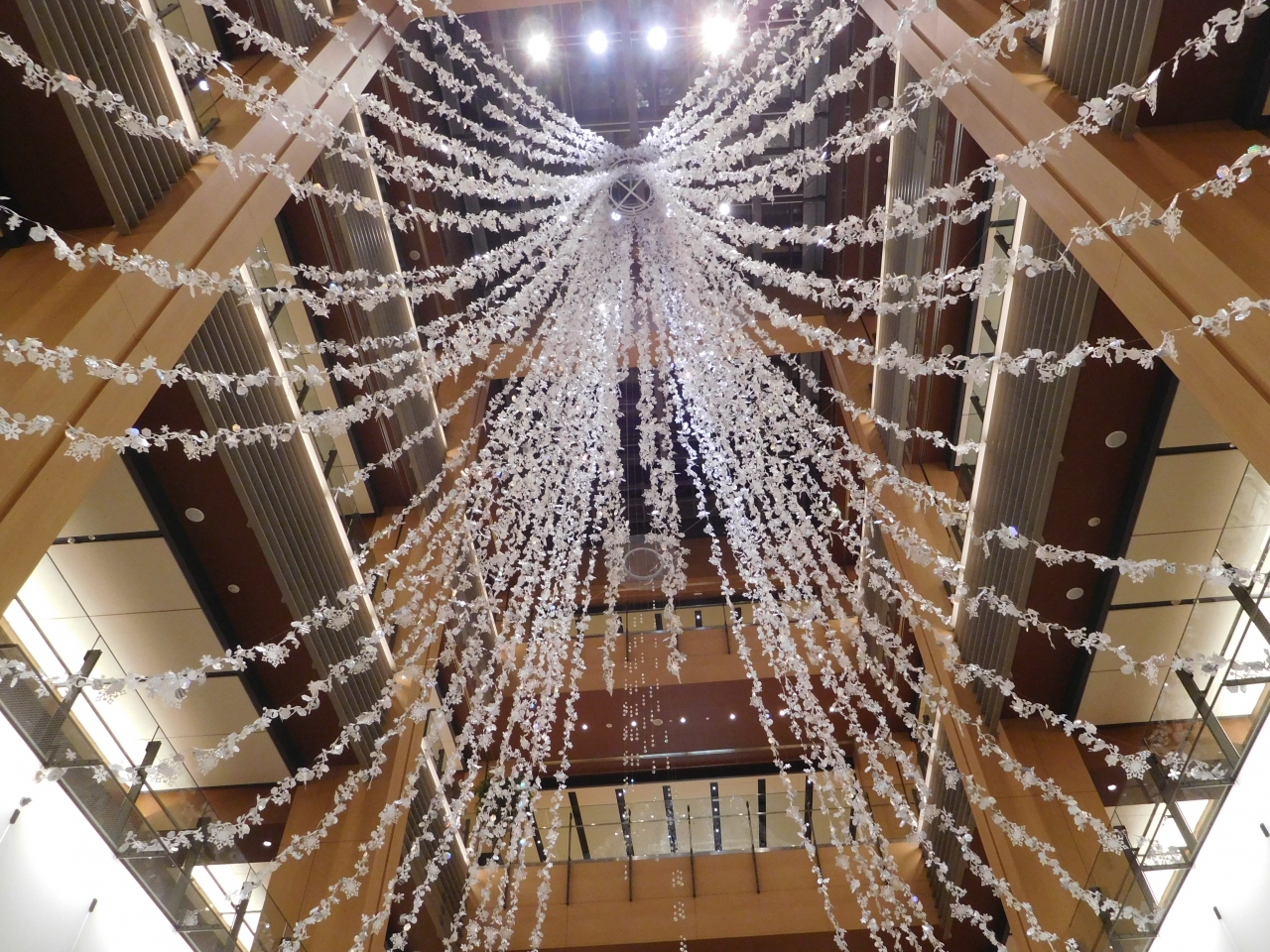 横浜のみなとみらいにある「横浜ランドマークプラザ」の大きな吹き抜け部分に、ホワイトクリスマスツリーが設置されていました。ツリーの両側には、雪が降っているような演出がされ、白樺の木でロープが張られていたり、ランタンが置いてあったり、まるで北欧のような雰囲気の上品なクリスマスツリーでした。上の階からや、階段の途中、1階の正面など、様々な角度からクリスマスツリーを楽しむ事が出来て良かったです。