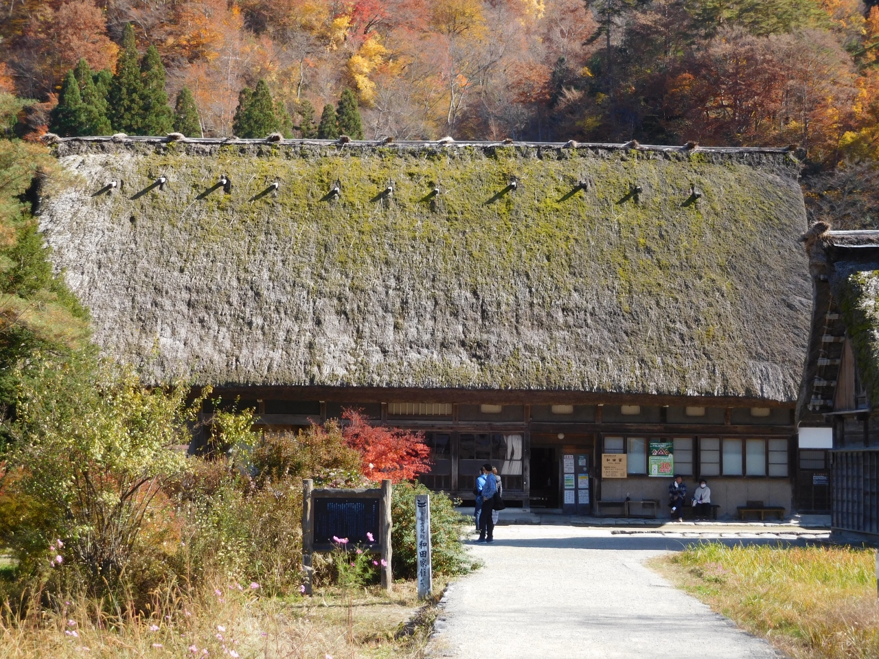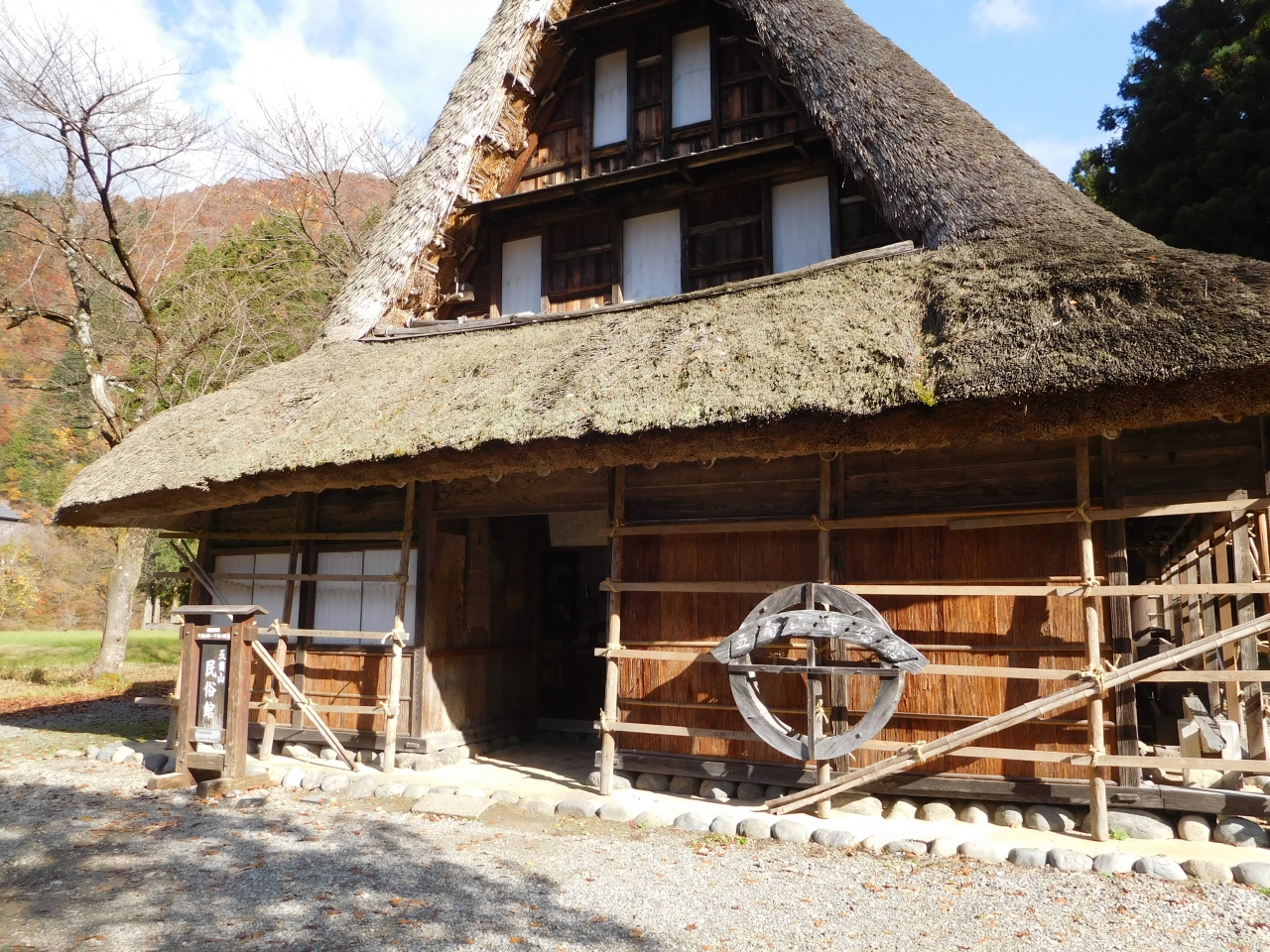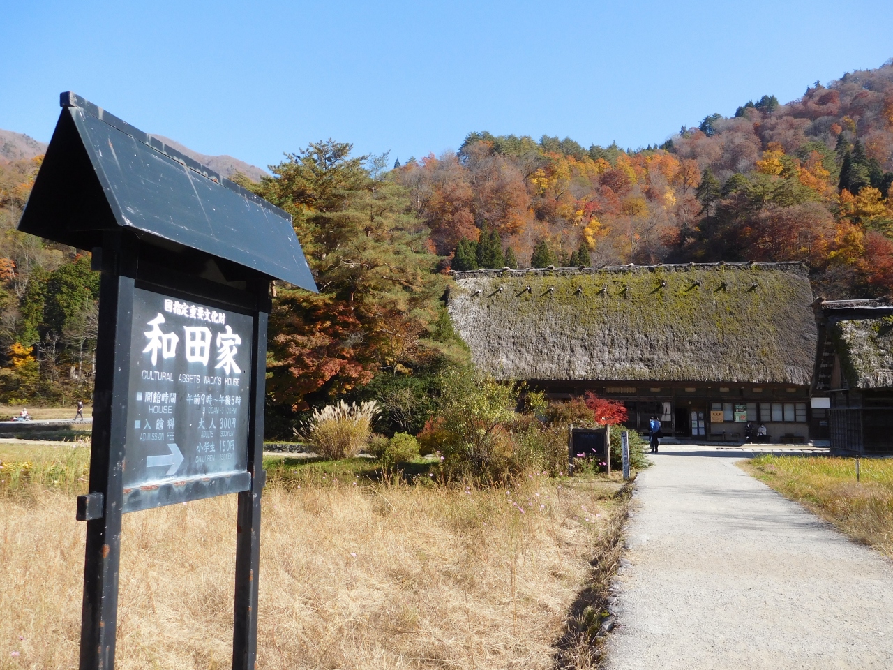 世界遺産に登録された白川郷「萩町合掌造り集落」にある、かなり大きな合掌造りで、国指定重要文化財に指定されています。有料(300円)で内部の見学が出来たので、中に入っての見学もしました。1階は大家族が暮らしていたような畳敷きの部屋があり、2階の屋根裏の様子も見る事が出来ました。ちょうど紅葉の時期だったので、背景の山々との景色もすごく良く、和田家の周辺で写生をしている人も結構見かけました。とても見応えのある合掌造りでした。