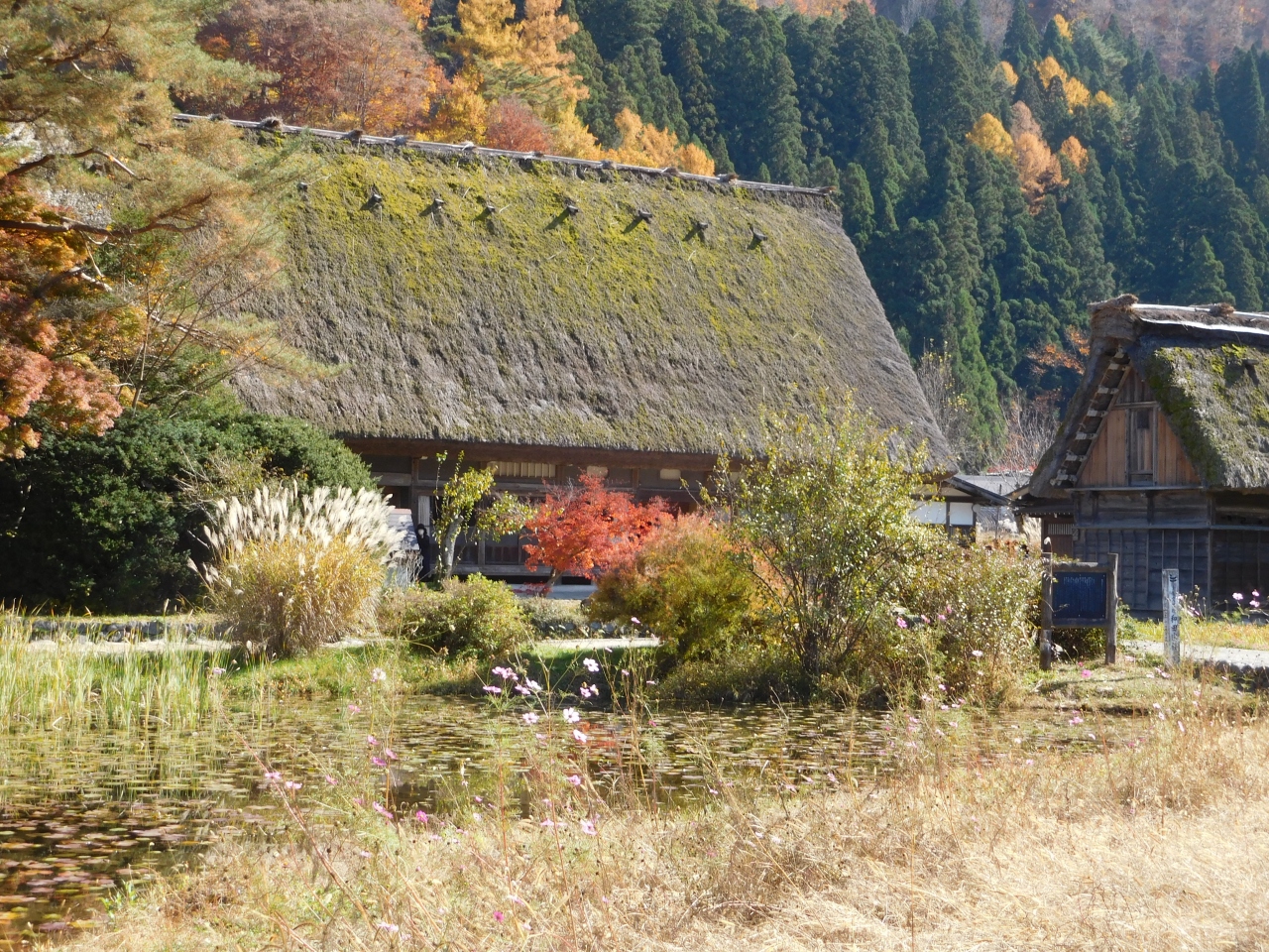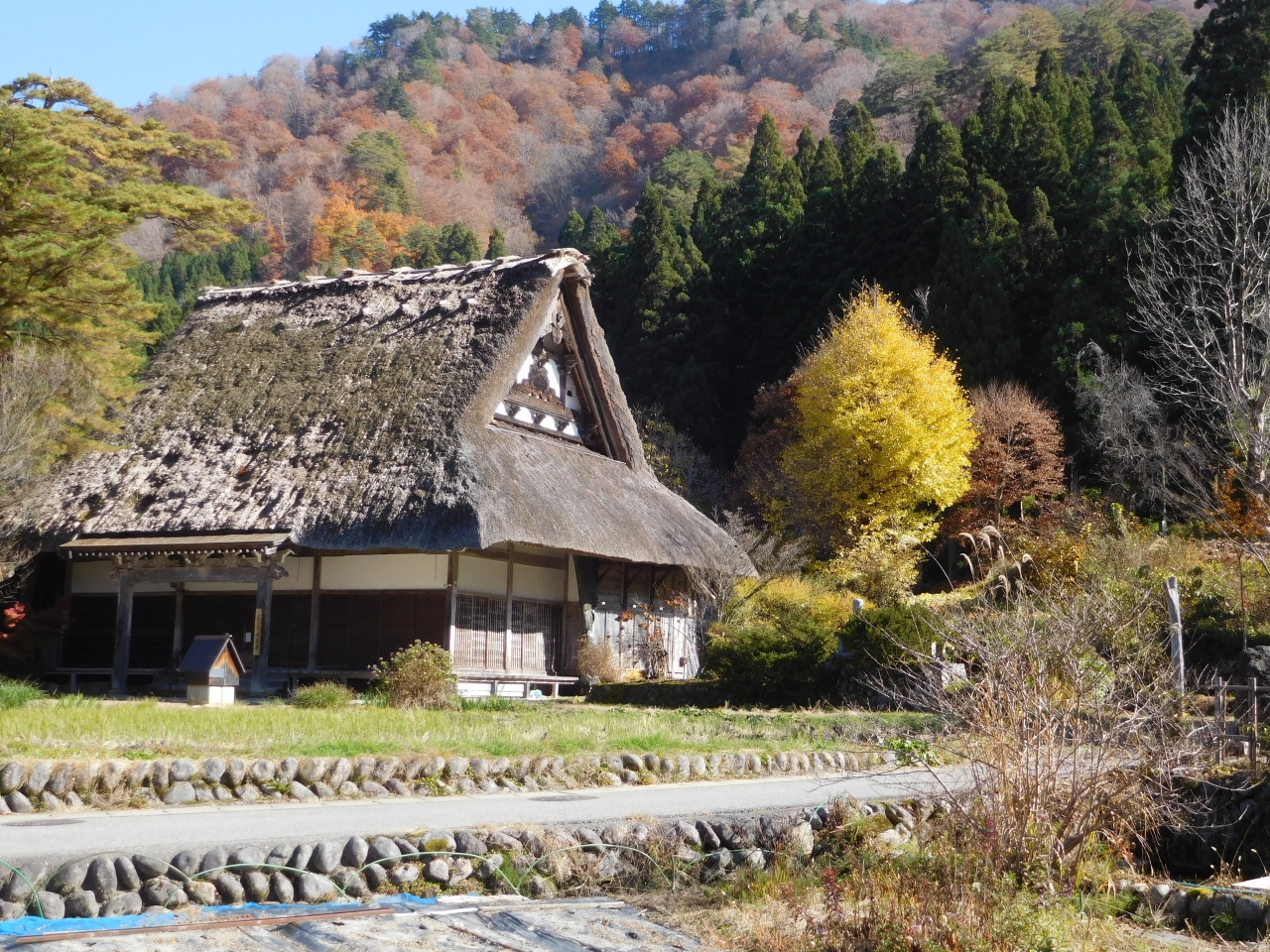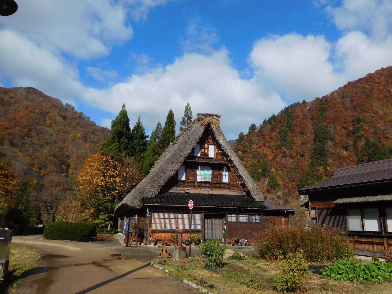世界遺産に登録された白川郷「萩町合掌造り集落」にある、かなり大きな合掌造りで、国指定重要文化財に指定されています。有料(300円)で内部の見学が出来たので、中に入っての見学もしました。1階は大家族が暮らしていたような畳敷きの部屋があり、2階の屋根裏の様子も見る事が出来ました。ちょうど紅葉の時期だったので、背景の山々との景色もすごく良く、和田家の周辺で写生をしている人も結構見かけました。とても見応えのある合掌造りでした。