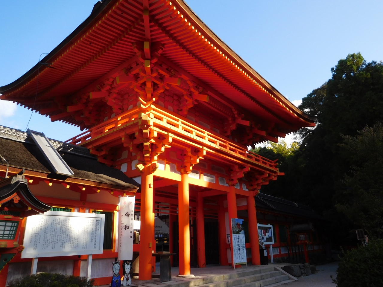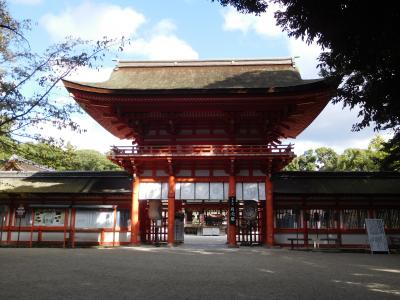 地下鉄「北大路駅」からバスで行きました。賀茂川のすぐ近くにあり、周囲はのどかな雰囲気の場所で、青空に鮮やかな朱色の鳥居や、とても存在感のある楼門が映えて見えました。朝早く訪れた事もあり、参拝客も少なかったので、ゆっくりと写真を撮りながら参拝をする事が出来て良かったです。