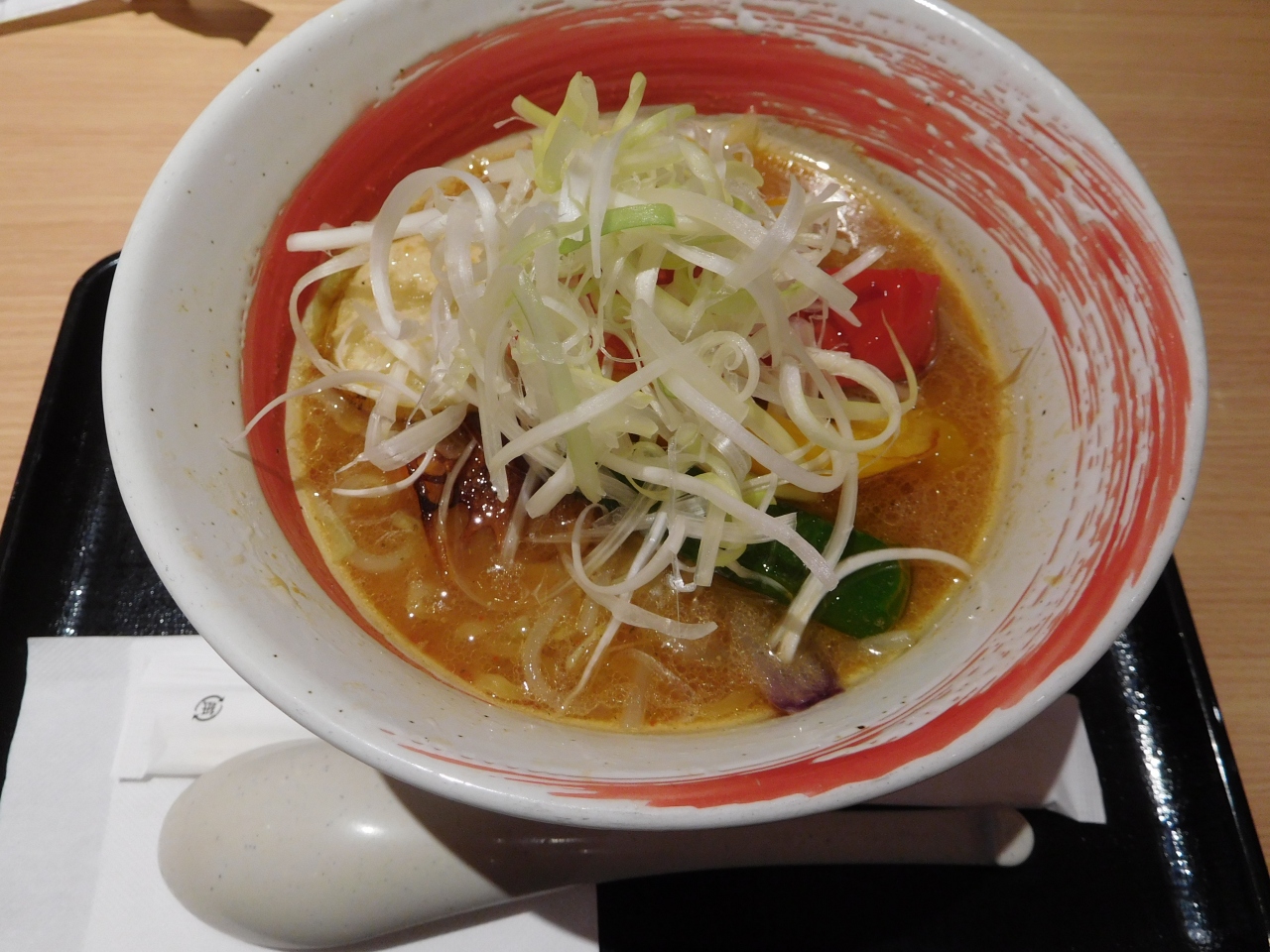 羽田空港第1旅客ターミナル、南ウィングの到着ロビーを出てすぐの場所にあるJAL系列の札幌ラーメンのお店です。乗車予定のリムジンバスの時間まで余裕があり、帰宅してからだと遅くなってしまうので、こちらのお店で「ベジタブルラーメン」を頂きました。いろいろなお野菜が入っていて、なかなか美味しかったです。