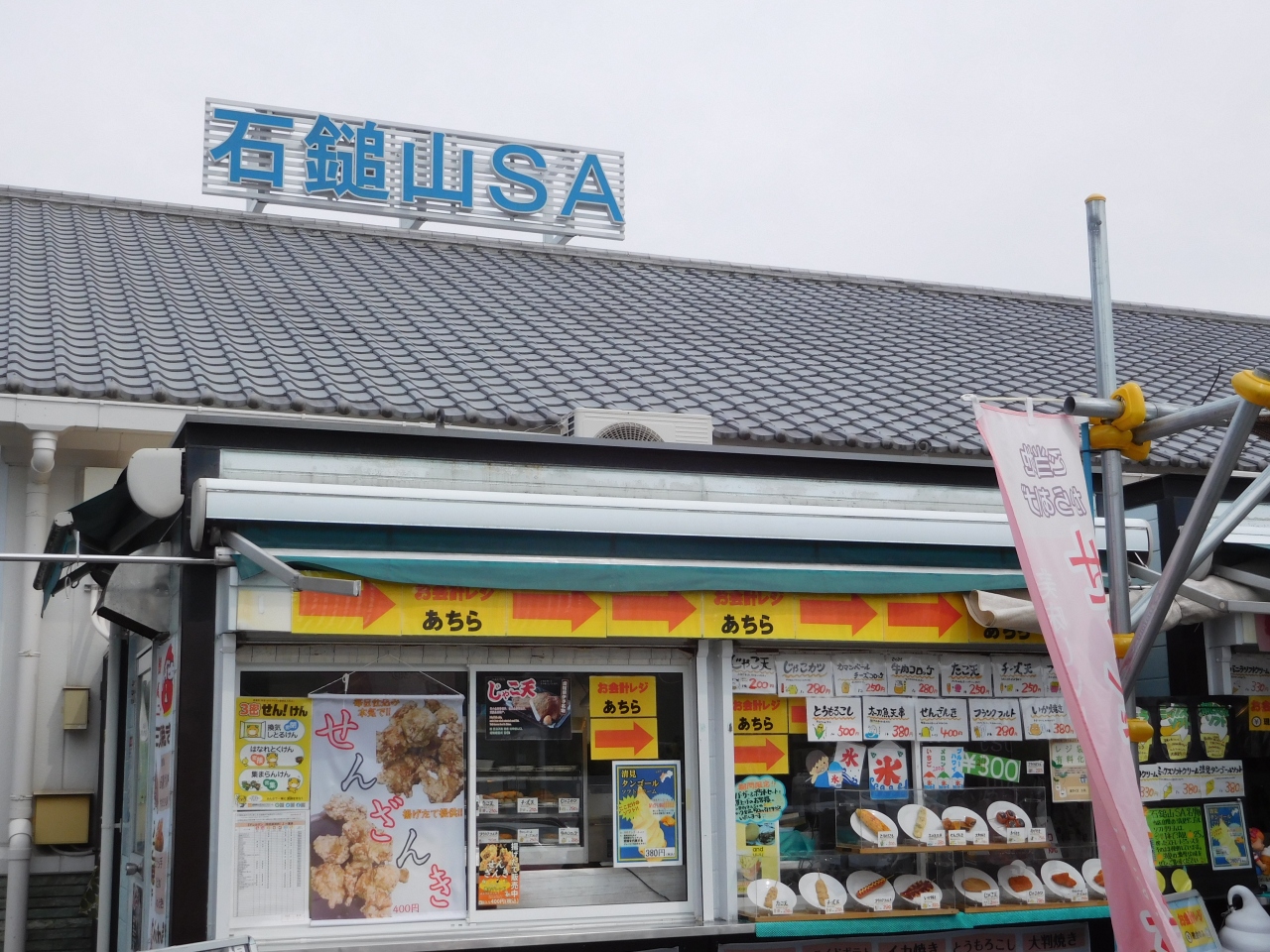 ドライブマップの冊子の中に、石鎚山サービスエリアには、愛媛全域のご当地グルメが揃っているという情報を見つけ、松山自動車道の松山方面へと向かう途中で立ち寄りました。思ったよりもこじんまりとした感じでしたが、店内には、フードコート、売店、奥にはレストランがあり、休憩でちょっと立ち寄るにはちょうどいい感じの規模でした。