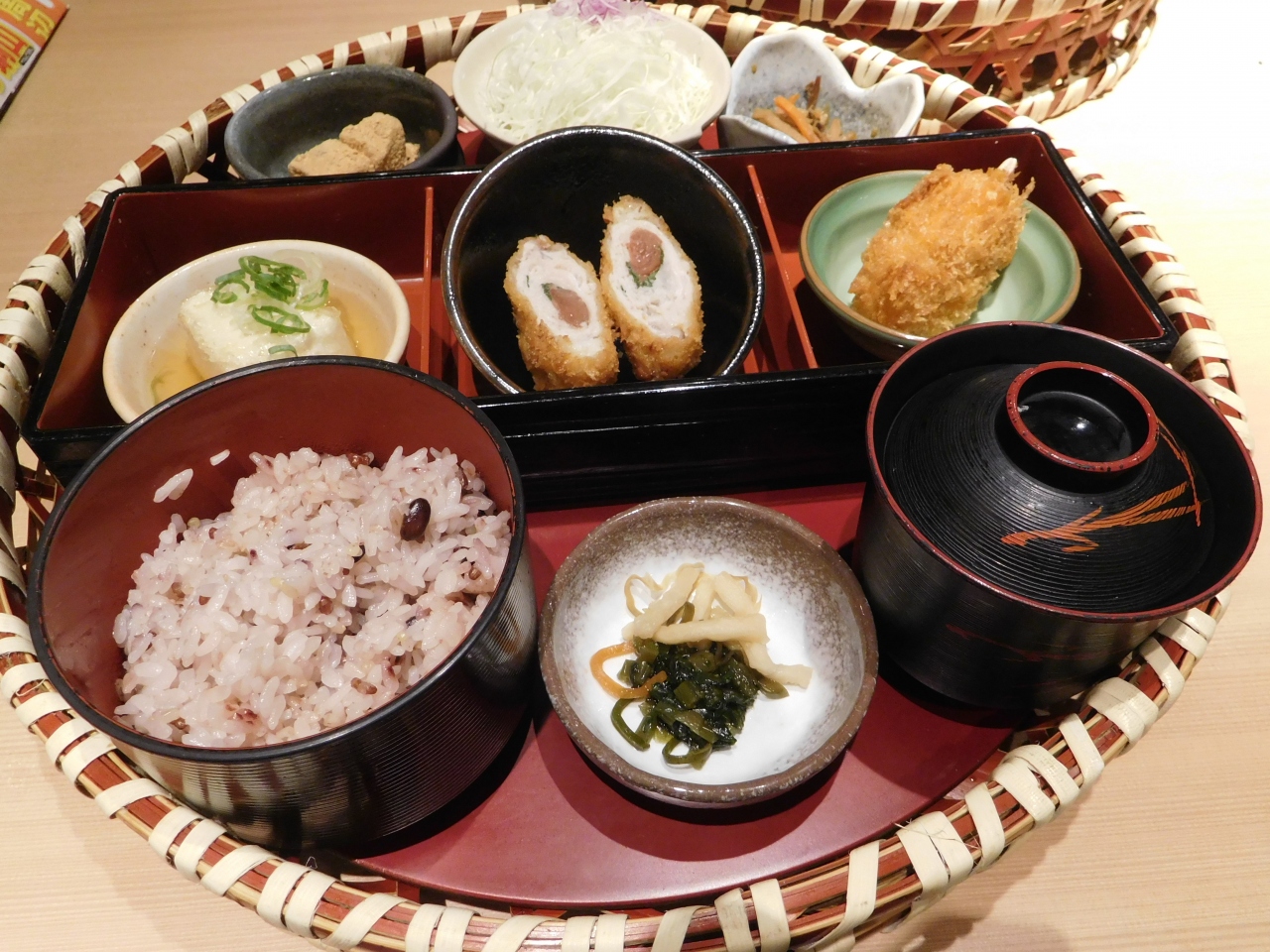 イオンモール新居浜店のレストラン街にある、トンカツ屋さんです。いろいろなおかずが少しづつ楽しめる「懐石」メニューを頂きました。(テーブル席にあるタッチパネルでの注文でした。)ご飯は、白米か十穀米を選ぶ事が出来、ご飯、お味噌汁、キャベツのお替りは自由でした。すりごまをトンカツソースに合わせて頂いたので、ゴマの風味もして、トンカツが美味しかったです。お替りも出来たので、コスパの良いお店で良かったです。