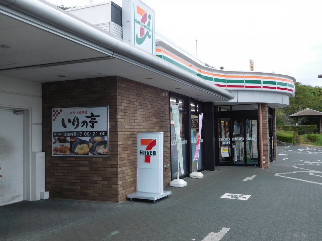 松山自動車道の下り線で、入野パーキングエリアを利用しました。コンビニ(セブンイレブン)と小さな食事処が併設されていました。飲み物を買いにコンビニに入ってみた所、愛媛県のお土産品(みかんジュースやお菓子など)も結構置いてありました。休憩で立ち寄ったついでに、さっと買い物をする事が出来て良かったです。