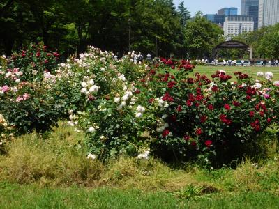 日比谷公園の、日比谷公会堂側の「にれの木広場」と「大噴水」の間にある、芝生エリアが「第二花壇」になります。中央には、ソーラー時計があり、花壇の両端には、赤色や白色のバラが咲いていました。花壇の外側には、ベンチが沢山あるので、休憩している人達の姿が結構いました。芝生がメインの印象でしたが、きちんと綺麗に整備されていると思いました。