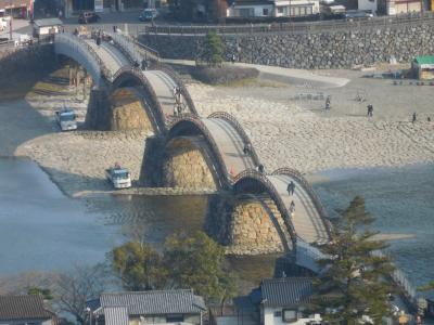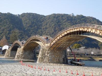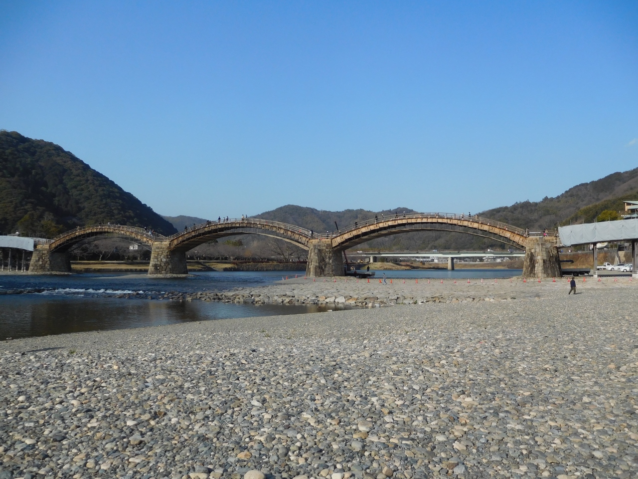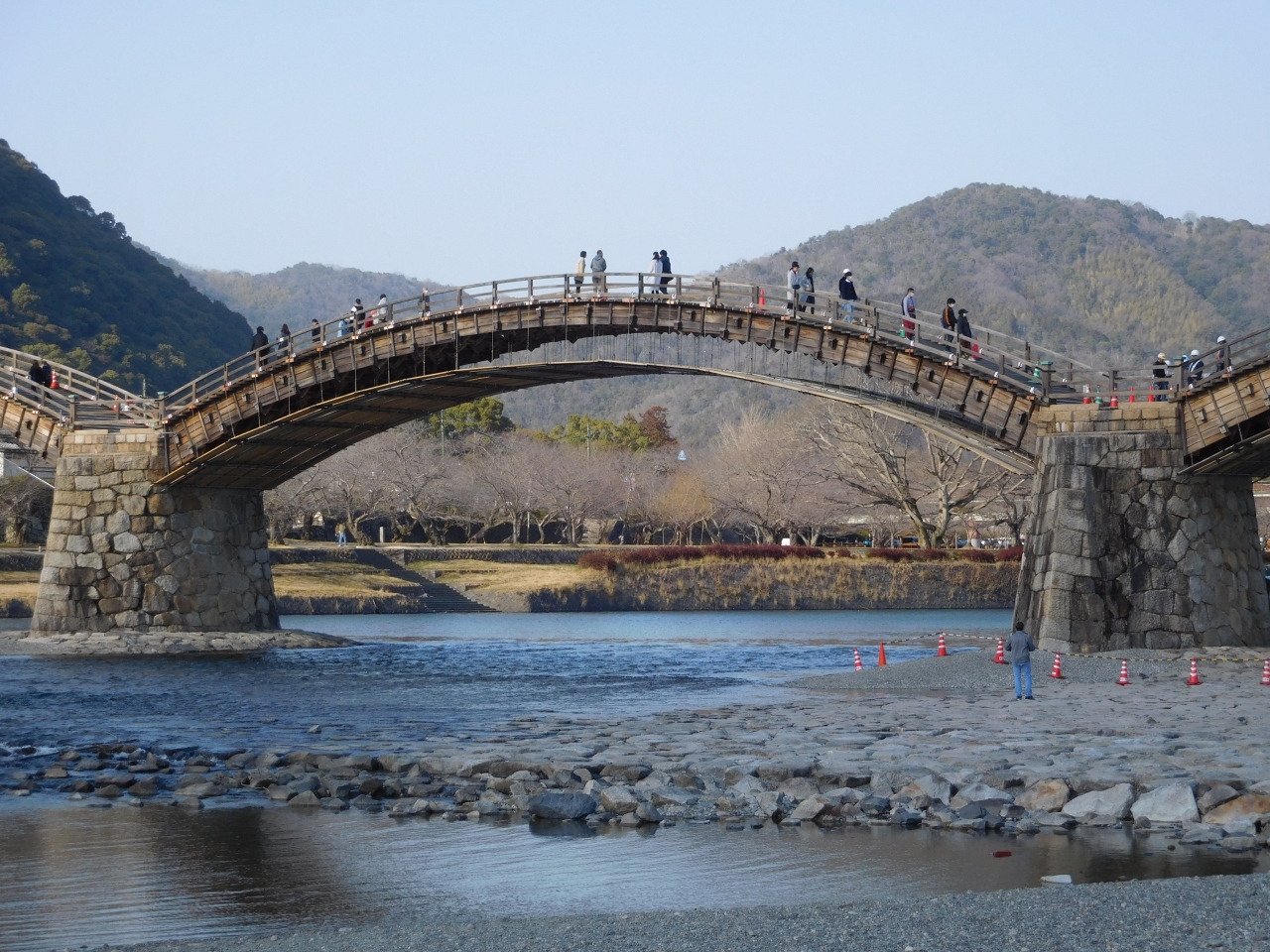 錦川に架かる、美しい5連アーチの木造橋で、日本三名橋の一つになっています。橋を通行するには、入橋料(往復分)が必要で、ロープウェー・岩国城とのセット券もありました。(セット券の販売時間は15時頃まででした。)とても見晴らしの良い場所なので、周りの景色を眺めたり、またアーチの長さが結構あるので、次はどんな景色が見えるのだろうというワクワク感もありました。また、岩国城へと向かうロープウェーや、岩国城の天守閣からも、錦帯橋の美しい景色が楽しめて良かったです。