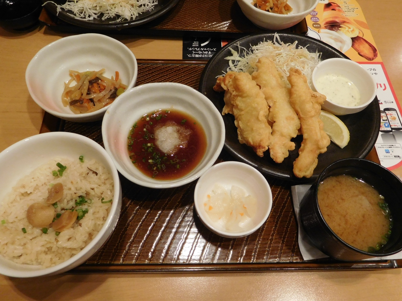 「日本の美食紀行 秋」のご当地メニューのフェアが開催されていたので、大分県の「とり天松茸ご飯和膳」を注文しました。サクサクした、ちょっと不思議な食感のとり天を天つゆにつけて頂きました。車でないとちょっと不便な場所にありますが、休日はファミリー層でとても混んでいて、騒がしかったです。