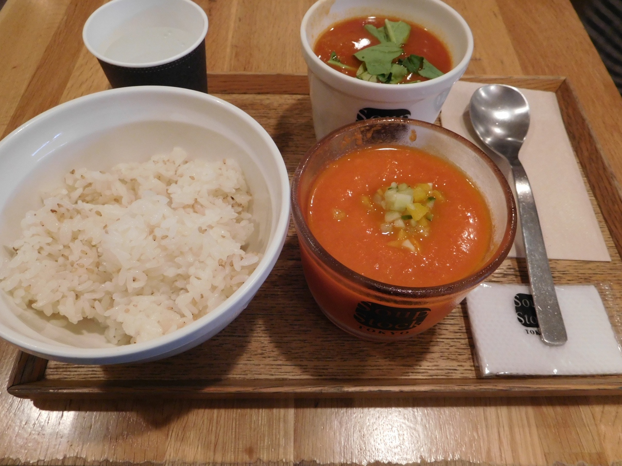 東急大井町線 自由が丘駅(大井町方面)構内にある、とてもこじんまりとした店舗です。入口で注文し、スープなのですぐに用意してもらえる事が出来、早くてとても便利でした。温かいスープと冷製スープのセットを注文しましたが、具沢山のスープで美味しかったです。電車の待ち時間などを利用している人が多く、一人で来ている人がほとんどでした。コーヒーはドリップで丁寧に入れているようで、少し時間がかかっていました。
