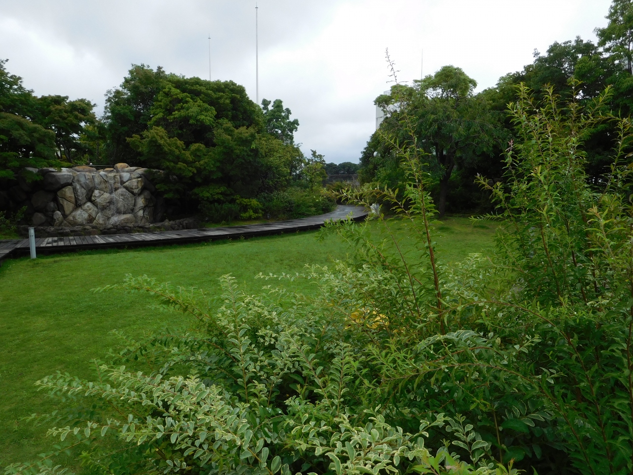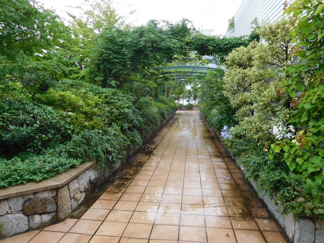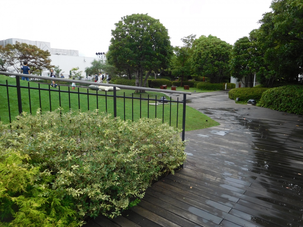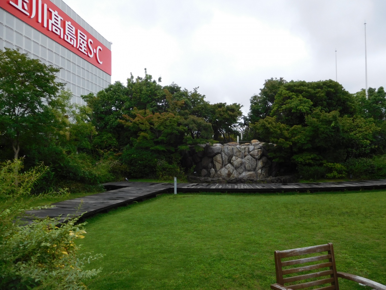 玉川高島屋S・C 本館の屋上フロアにある、広々とした屋上庭園です。子供達がのびのびと遊べるような芝生広場や、ちょっとした散策が出来る道、ゆったりとくつろげる休憩スペースなどがあり、緑が沢山あって癒される空間が広がっていました。小雨が降っていましたが、それでも意外と訪れている人が多かったです。
