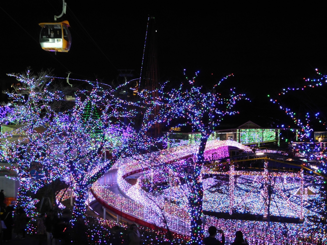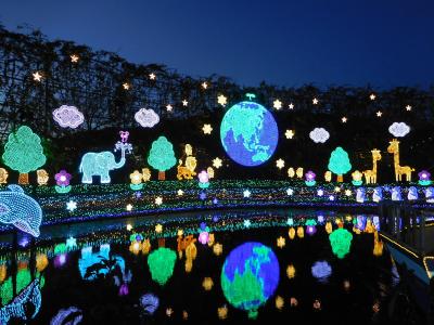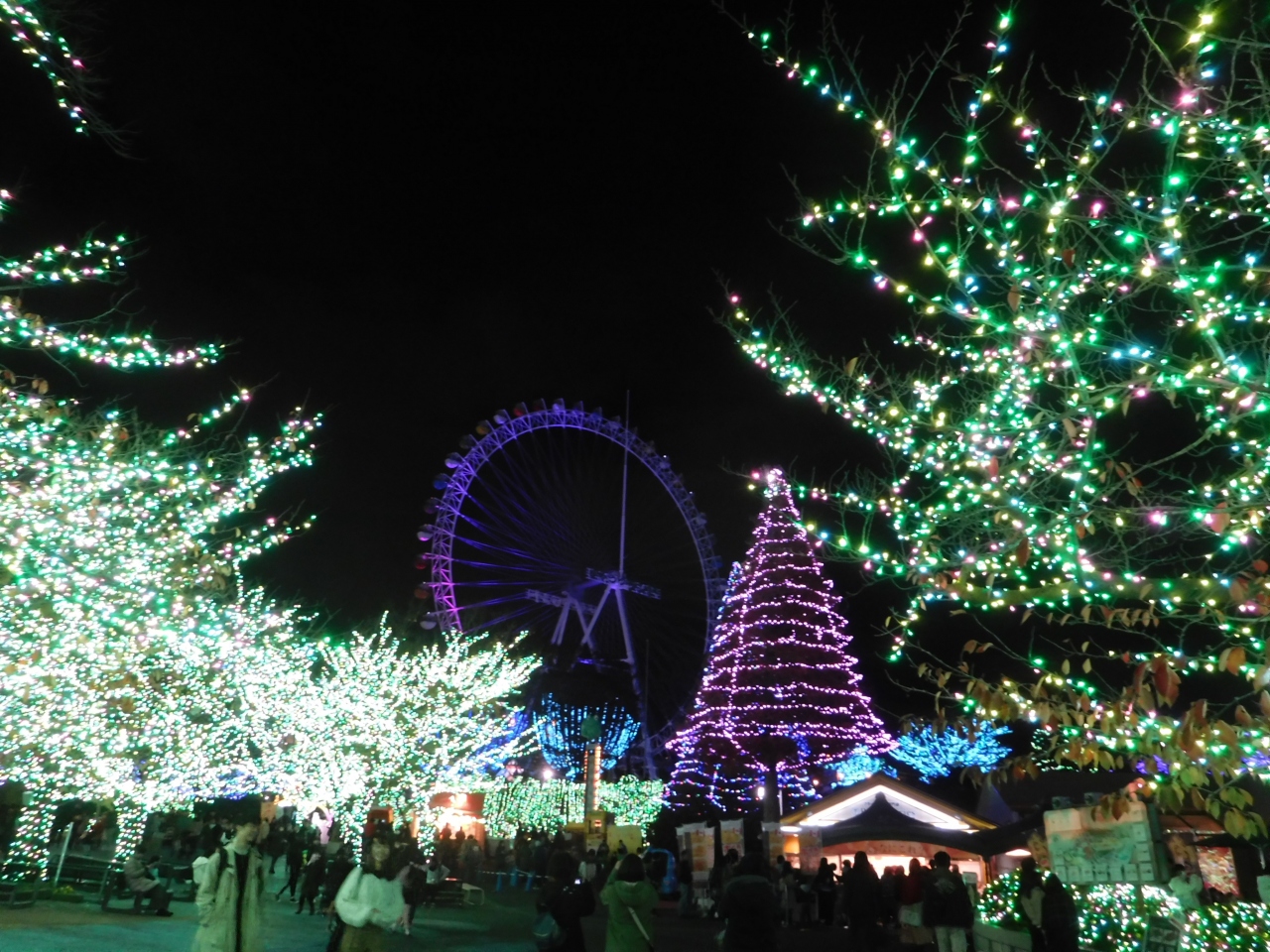 16時からはイルミネーション鑑賞用のチケットがあるので、安くなります。以前(3年前)にも来ていますが、400万球から600万球になり、全エリアリニューアルしたというので、再訪しました。休日だったので混んでいましたが、園内は結構広いので、ゆっくり楽しむ事が出来ました。噴水ショーは15分ごとに違ったメニューが行われているので、良かったです。