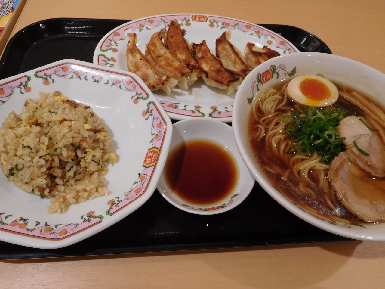 イトーヨーカドー小淵店のフードコートの一角にある「餃子の王将」です。注文口のすぐ横には、イートイン用のテーブル席(通常のお店のスタイル)がありますが、混んでいる場合は、先に注文を済ませて呼び出しベルを受け取り、フードコートのテーブル席で食べる事も出来るようになっていました。ラーメン、餃子、チャーハンがセットになった「ラーメン定食」を注文しました。買い物のついでにさっと食事をする事が出来て良かったです。