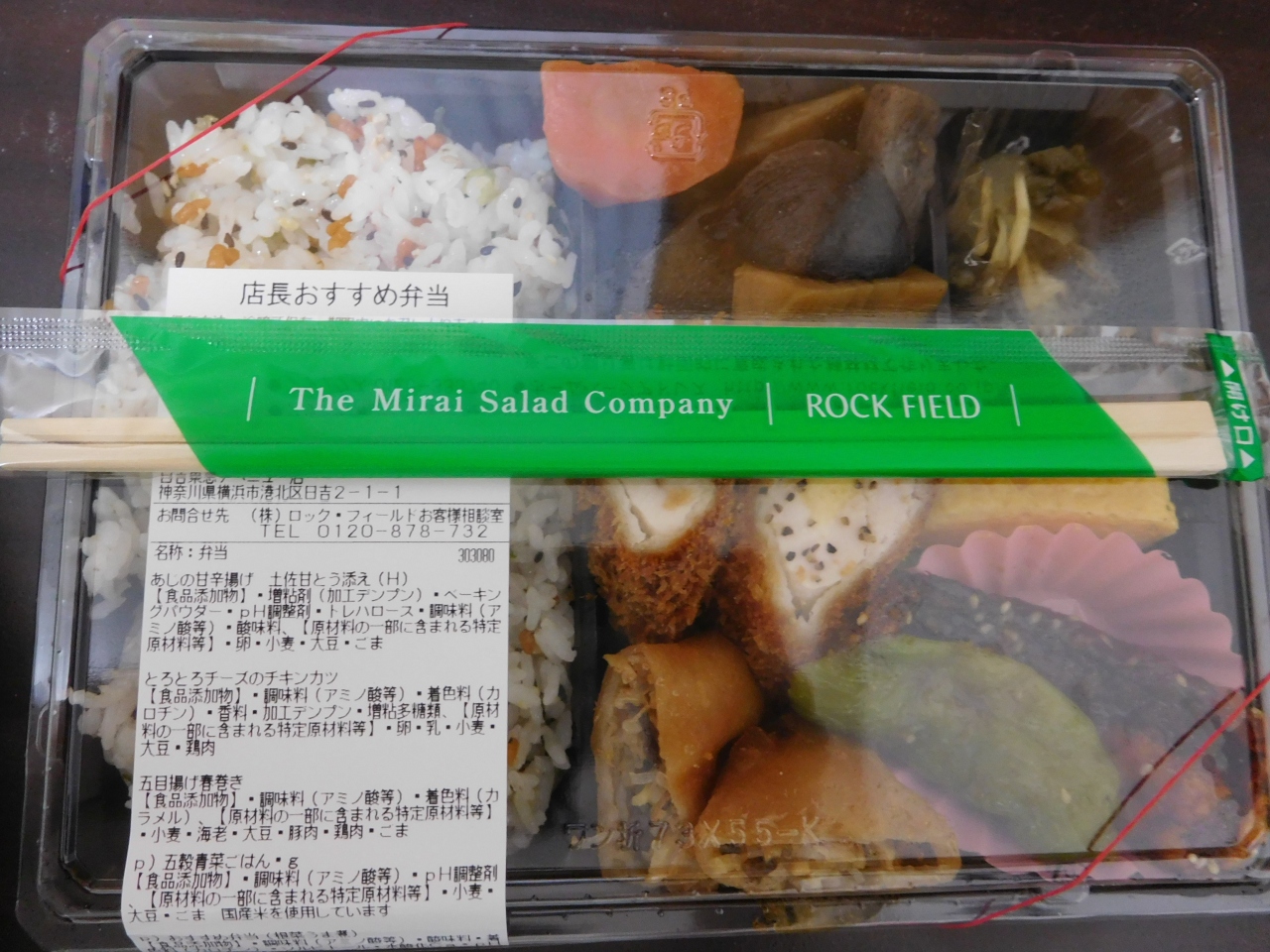 日吉駅の改札を出てすぐ目の前にある、日吉東急アベニューの1階入口近くにあるお店です。いろいろなお弁当やお惣菜が沢山並んでいて、便利で買いやすいお店です。20時過ぎだったので、お弁当の数は少なくなっていましたが、割引で購入する事が出来て良かったです。また、おかずもいろいろと入っていて、美味しかったです。