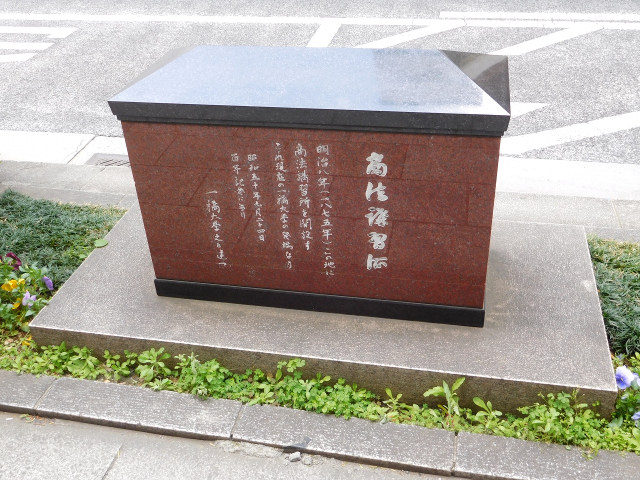 銀座シックス前の、銀座中央通り沿いにポツンと赤い石碑が置かれています。一橋大学の前身であった、「商法講習所」が明治8年(1875年)にこの地に開設された事が書かれていました。とてもシンプルな石碑で、写真を撮っていたら、買い物に来ていたおばさま方に何があるのかしら、と不思議そうに見られてしまいました。