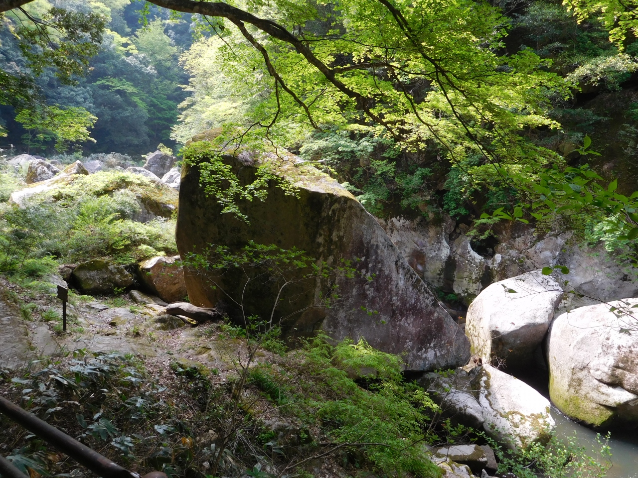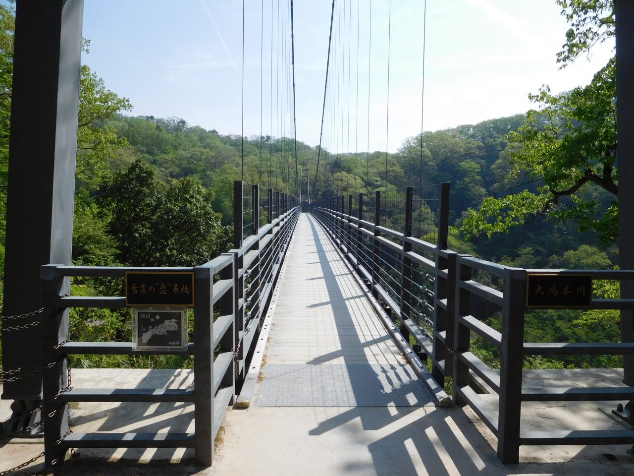 奥出雲の大自然の中にある渓谷です。宇根駐車場から、舌震の"恋"吊橋を渡り、高い位置に設置されたバリアフリーの遊歩道を歩いて行きました。とても歩きやすく整備されていました。遊歩道の中程で、川沿いの遊歩道に下り、Uターンして戻りましたが、きちんと滑り止めのマットが敷いてあったり、こちらも歩きやすかったです。川の迫力のある水音を聞きながら、大自然が作り出した巨大な岩や奇岩を眺めながら散策しました。これだけ綺麗に整備された場所にも関わらず、無料で楽しめたのはすごく良かったです。
