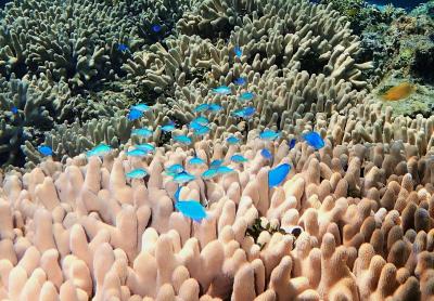 ◆阿嘉島クシバルビーチでのシュノーケリング(3/3)デバスズメダイのブ...