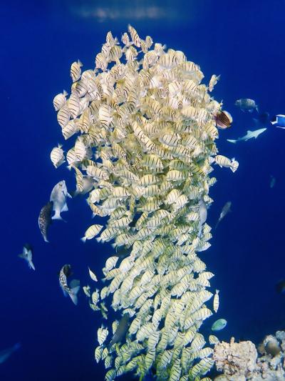 #3-3 その7 海底にいたシマハギの群れに近寄ると、海面に向けタワー...