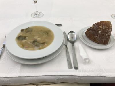 前菜のスープボールによるサーブ皿が空になると、おかわりを勧めに来てくれ...