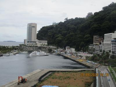 ホテル「玉の湯」客室の窓から 4. 熱海港を見下ろす。「ホテル後楽園・...