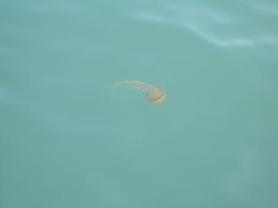 おっ!信じ難いですが、クラゲが確かに港内で浮かんで来た!