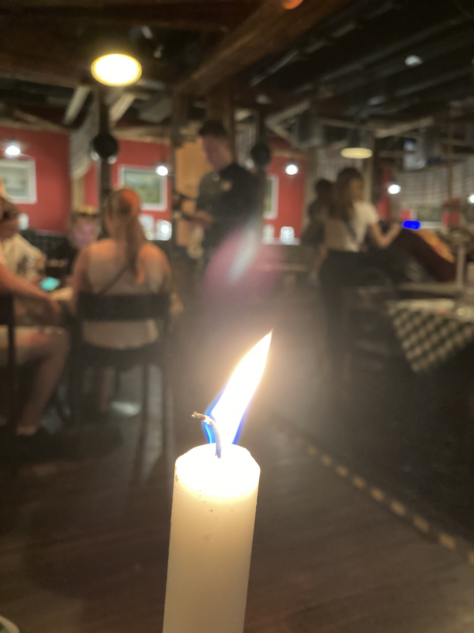 店内に入ると暗い雰囲気で隠れ家的な感じ、さらにそれぞれのテーブルにはろうそくが灯され、良い雰囲気でした。