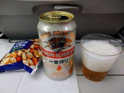 搭乗券もゲットし安らぎのひととき。セブンイレブンで買っておいた本麒麟&...