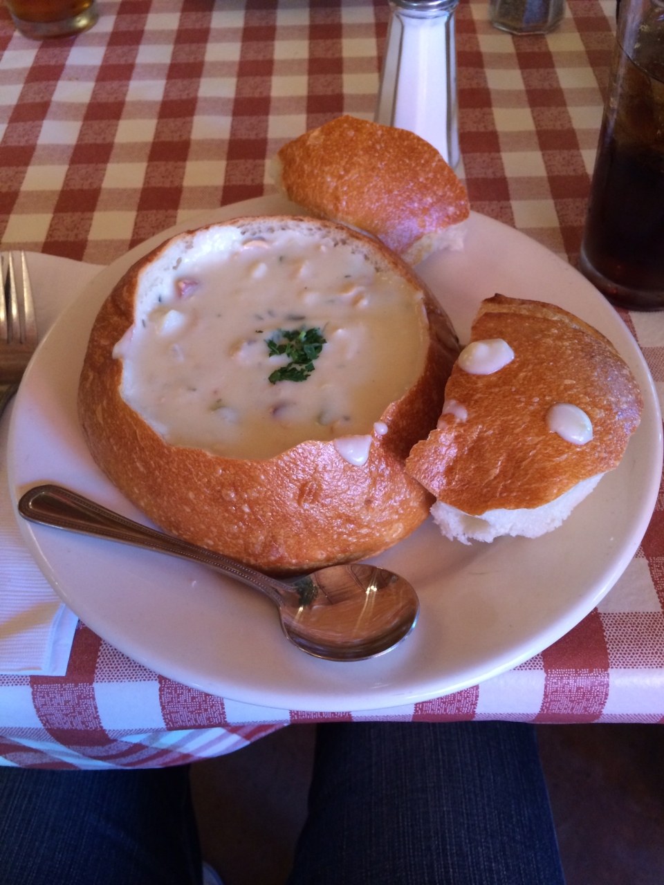 私が行ったのは平日だったため、それほど人はいなく開店後すぐ席につくことが出来ました。地元の友人がオススメするクラムチャウダーを注文。最初はそのボリュームに圧倒され、全部食べきれるかと心配しましたが、これがまたコクがあり美味! ちょっと酸味のあるパンと良く合い、ぺろりと完食することが出来ました。