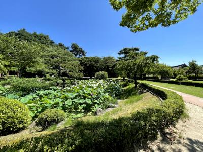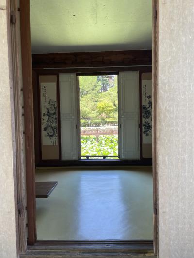烏竹軒も船橋荘も、鏡浦湿地公園の最深部にあるので、庭に蓮池があります。