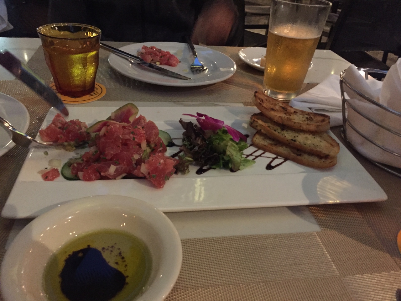 ディナーに家族3人で行きました。ロイヤルハワイアン内にあり、目の前のガーデンでは生演奏をしていました。ファイヤーなどもあり雰囲気は最高です。お食事も食材そのものの味を残した料理が多かったです。私たちはマグロのポケ、ウニのパスタ、仔牛のリブをいただきました。