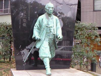 さらに、伊能忠敬翁が測量に出る前に度々参拝したという縁から、旅装の忠敬翁の銅像もあります。