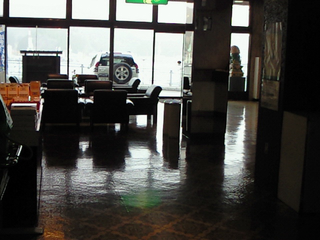 客室については、一人旅の宿命で致し方ない点ではありますが、海を臨める部屋ではなく、山側で、やや薄暗い感じの部屋でした。ただし、ロビーからは太平洋が一望できました。