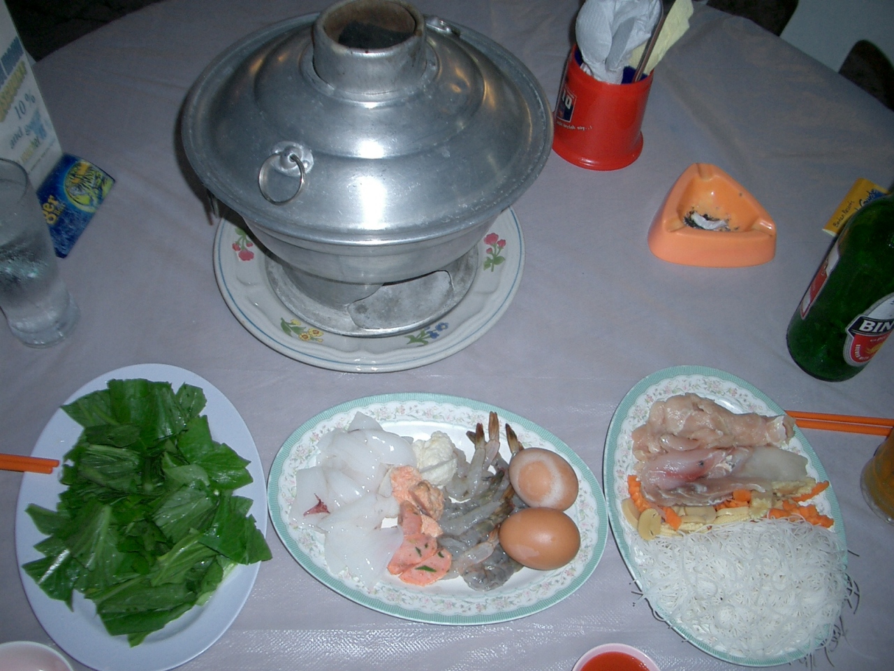野菜(不明な青菜、にんじん少々等)、エビ、イカ、魚のすり身、魚(よく分からないが歯ごたえがあった)、ビーフン