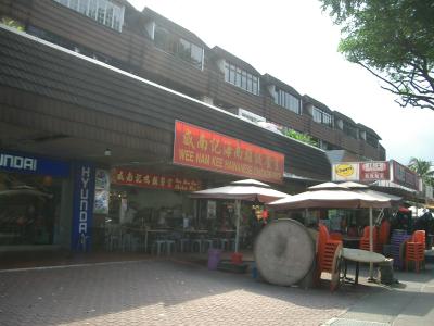 行き方は、MRTノヴィーナ駅のB出口(THOMSON RD.側)を出ます。目印はRevenue House(内国歳入庁)。出口を出ると目の前に広い道(THOMSON RD.)があります。出口を出て右側に行くと、すぐに右側に地下道の入り口(Revenue House方面)が見えるので、そこに入って道路の反対側へ。出たら方向を確認。広い道路側を見て左に進むと直ぐに左側にレストランが集まっているところになります。ウィー・ナム・キーは直ぐに見つけられます。
