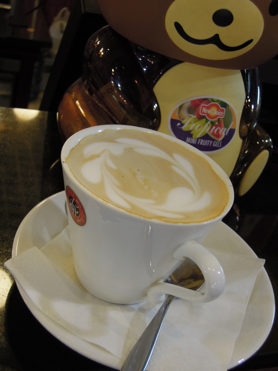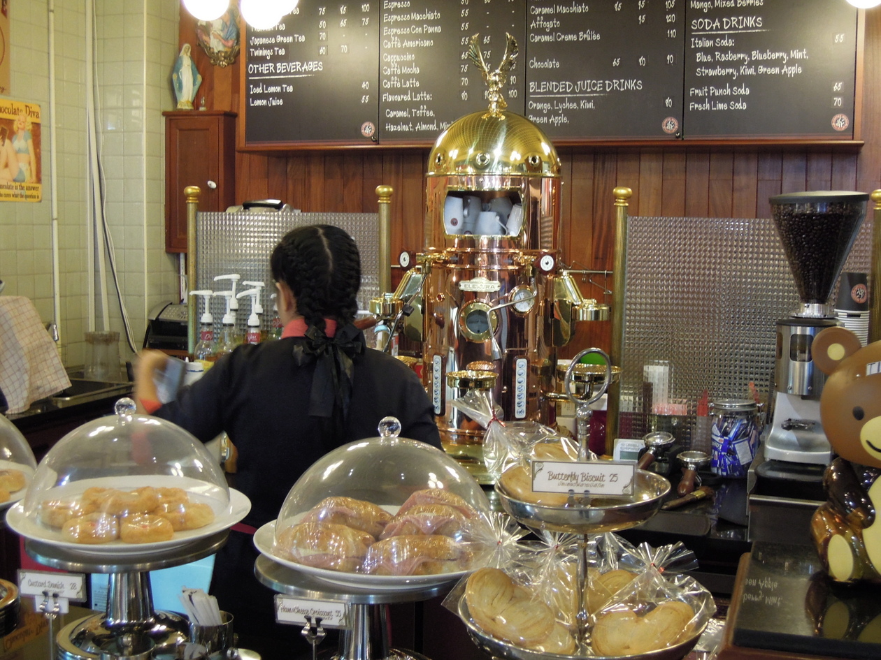 アジアらしい独特の匂いと雰囲気を放つモール内で一見馴染んでいるかのような小さなカフェですが、カウンターの中をよく見ると素晴らしいエスプレッソマシーンが置いてあります。どうやら Victoria Arduino(ビクトリア・アーデュイノ)社製のマシーンのようで、淹れている動作を見ているだけで楽しくなります。