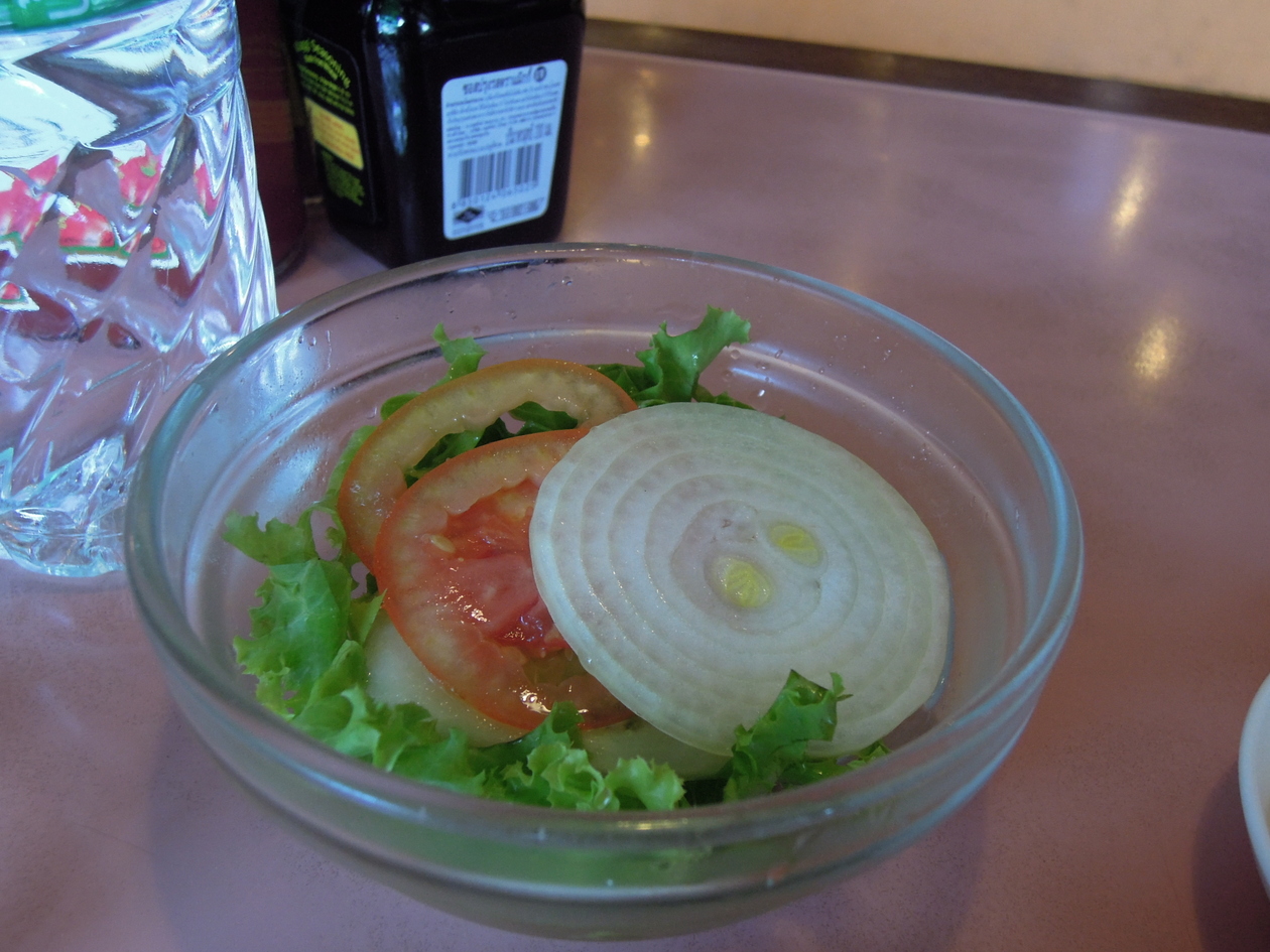 付け合わせのサラダのドレッシングもタイでは珍しく甘くありません。ちゃんと塩味が効いたフレンチドレッシング。