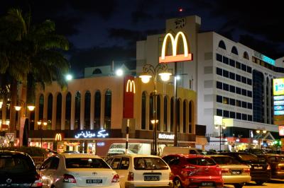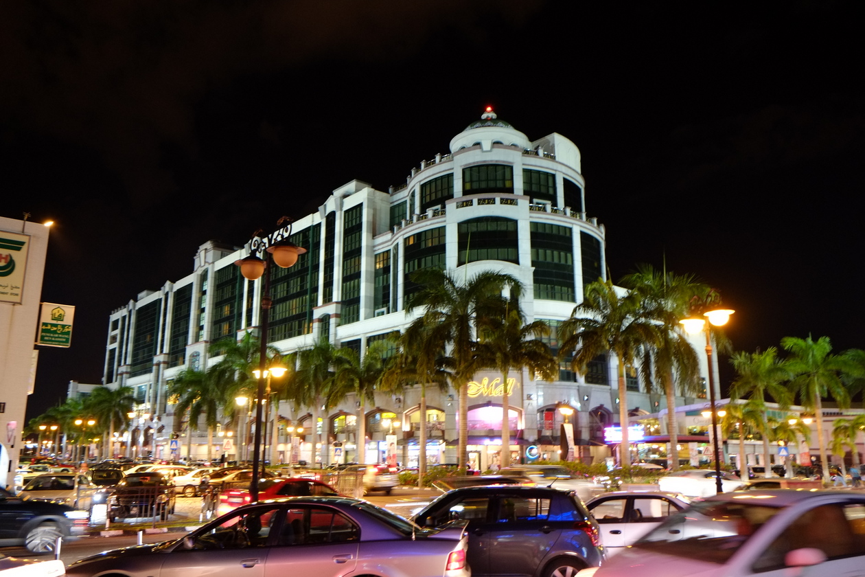 ブルネイではタクシーの数が少なく往復分を1台待機させておかなければいけない、2時間で70-80ドルという事情があるので、夜に繁華街に出かけていくのは難しいかと思います。(公共バスは夕方まで)