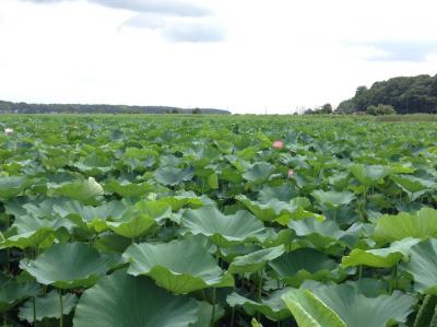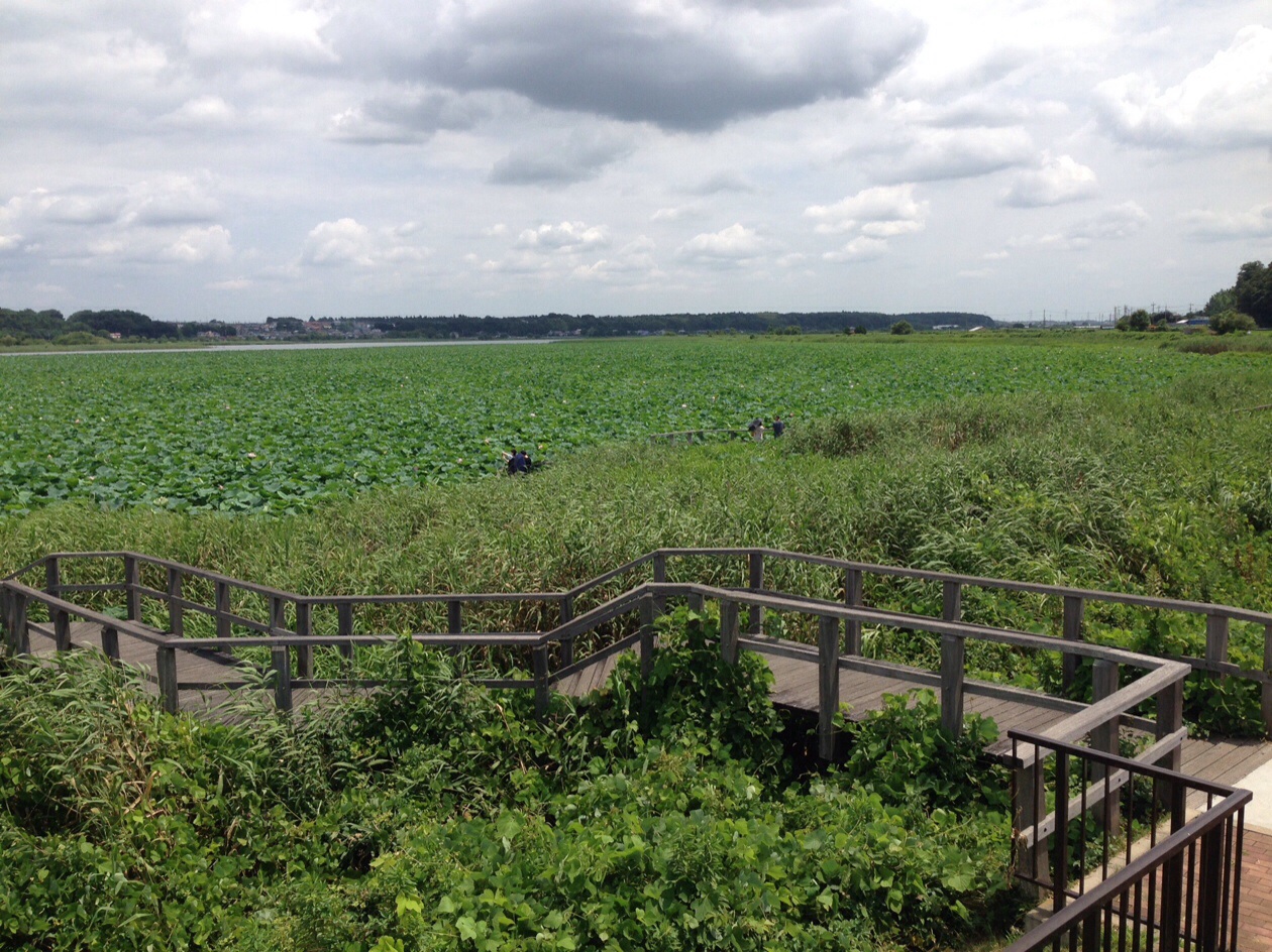 ちょうど真ん中あたりにある展望台から見る蓮の群生地の眺めは壮観でした。