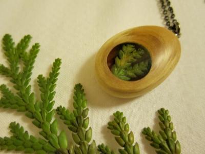 あすなろを削った中に葉を埋め込んだペンダントなどを売っています。