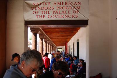 ダウンタウンの中心Plazaの向かいに建つPlace of the Governors 旧総督邸ではネイティブ・アメリカンが自作のアクセサリーを直接販売する市が立っていました。種類も豊富です。