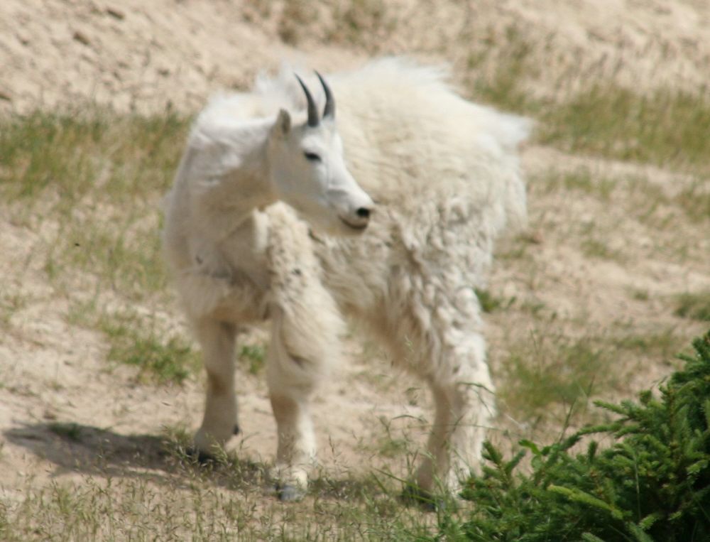 コロンビア大氷原とアサバスカ滝の中間にあるゴート&グレイシャーGoats & Glaciersの展望台はマウンテンゴートをよく見かけるポイントです。私も展望台の向かいで見ました。