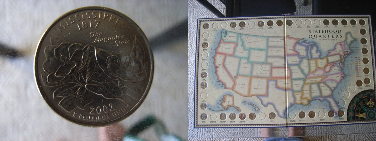 写真の台紙はアメリカ地図の周りに各州のコインをはめ込むもの。