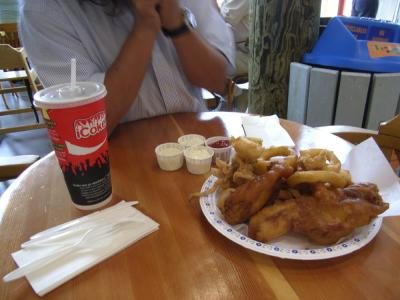 パブリックマーケット内イートインコーナーにあるCeline’sのSampler Platter($11)は新鮮なカキ、イカ、タラ、エビのフライが山盛りで二人でも食べきれないぐらいでした。塩で味付けしていないのでさっぱりしていて、付いてくるタルタルソースがよく合います。
