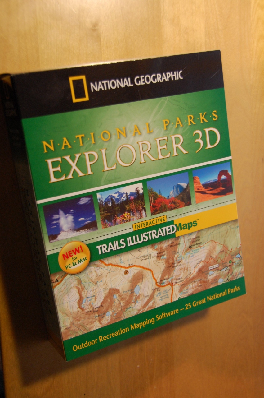 National Geographic社による25のアメリカ国立公園の詳細地図(3D地図、標高データあり)、解説が入った地図ソフトです。PC/Mac両用。トレイル等のルートを引いたり、地点を登録したりなどの編集も可能。GarminなどのハンディGPS機にも対応しています。これはいろいろ遊べるのでおすすめ!