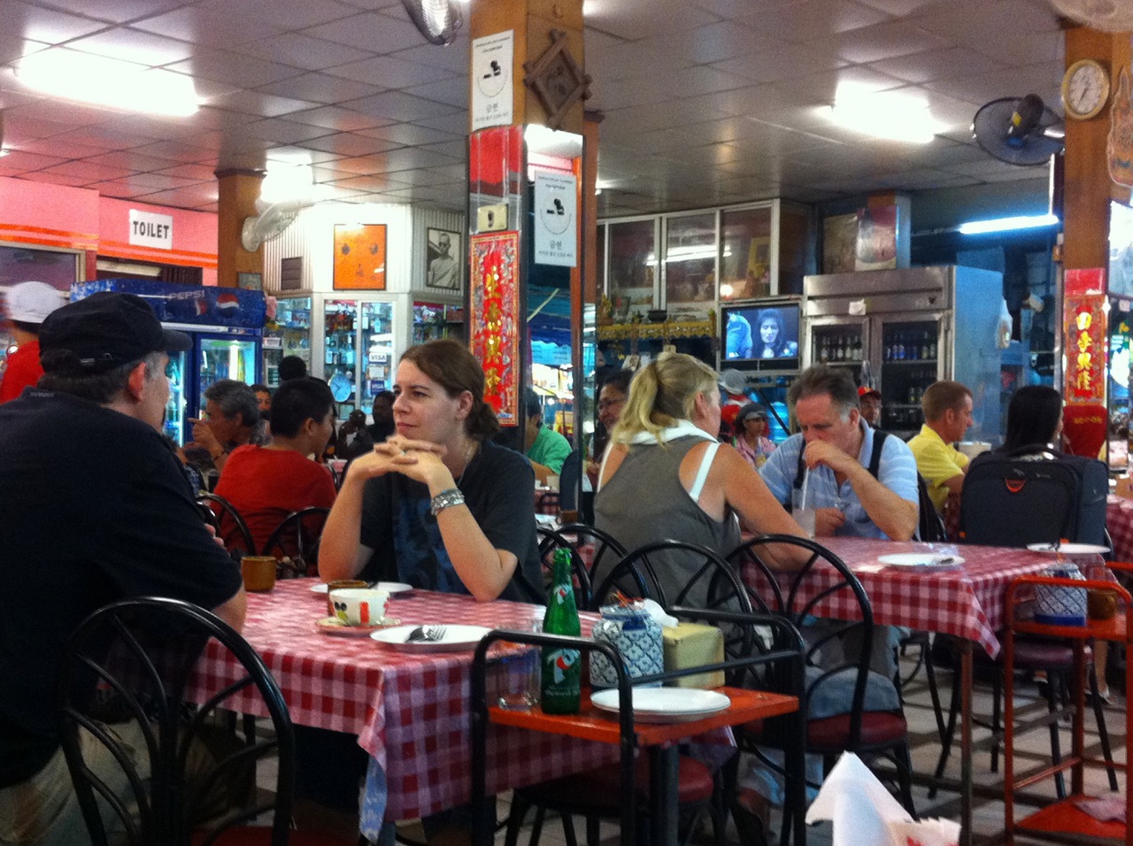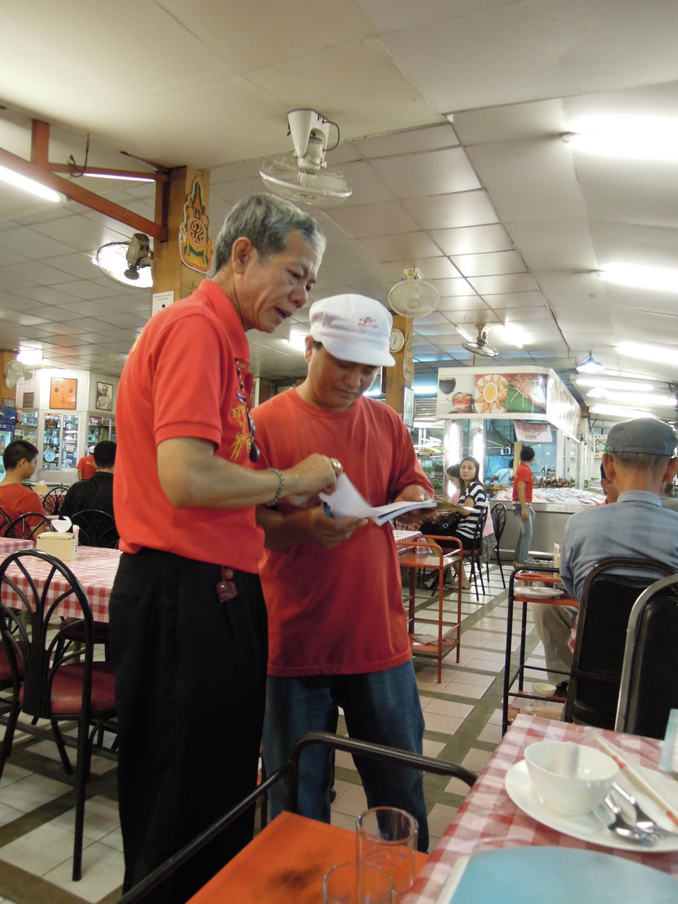 中国系タイ人のオーナーとお嬢さんが店内を駆け回ってビシっと采配を振るい、他では見られない店員さん達のきびきびとした動き。騒々しくて楽しい市場のシーフード店です。