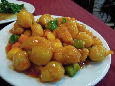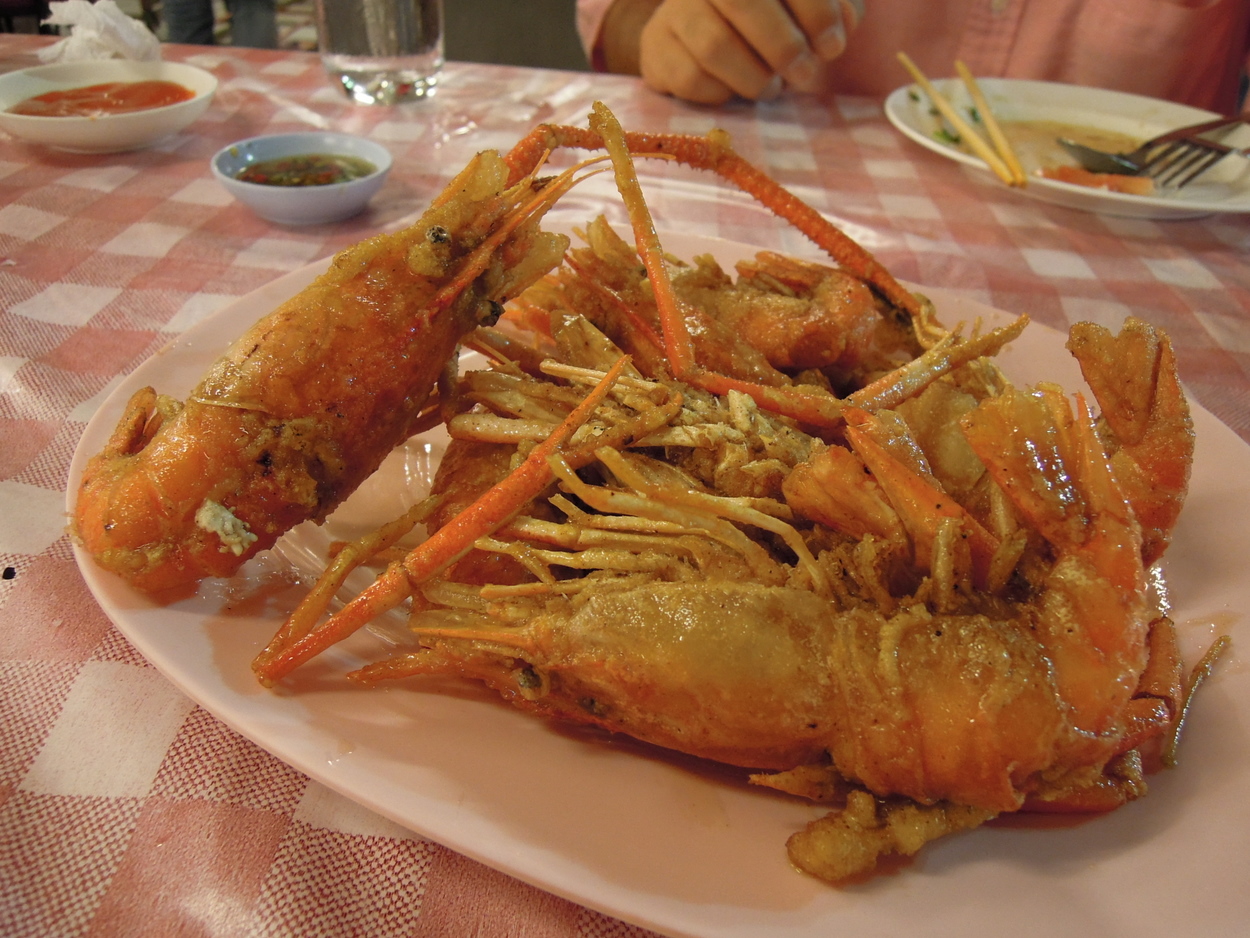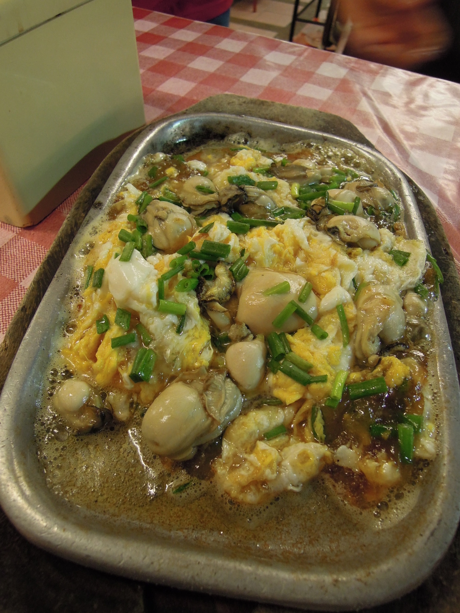 店先には氷の上に魚介が並び、オースワン(牡蠣の卵とじ)や川海老の素揚げは新鮮でした。