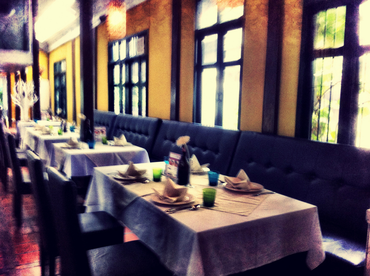 車の往来が激しいルアムルディの通りにありながら落ち着いた雰囲気。店内も明るくゆったりしています。