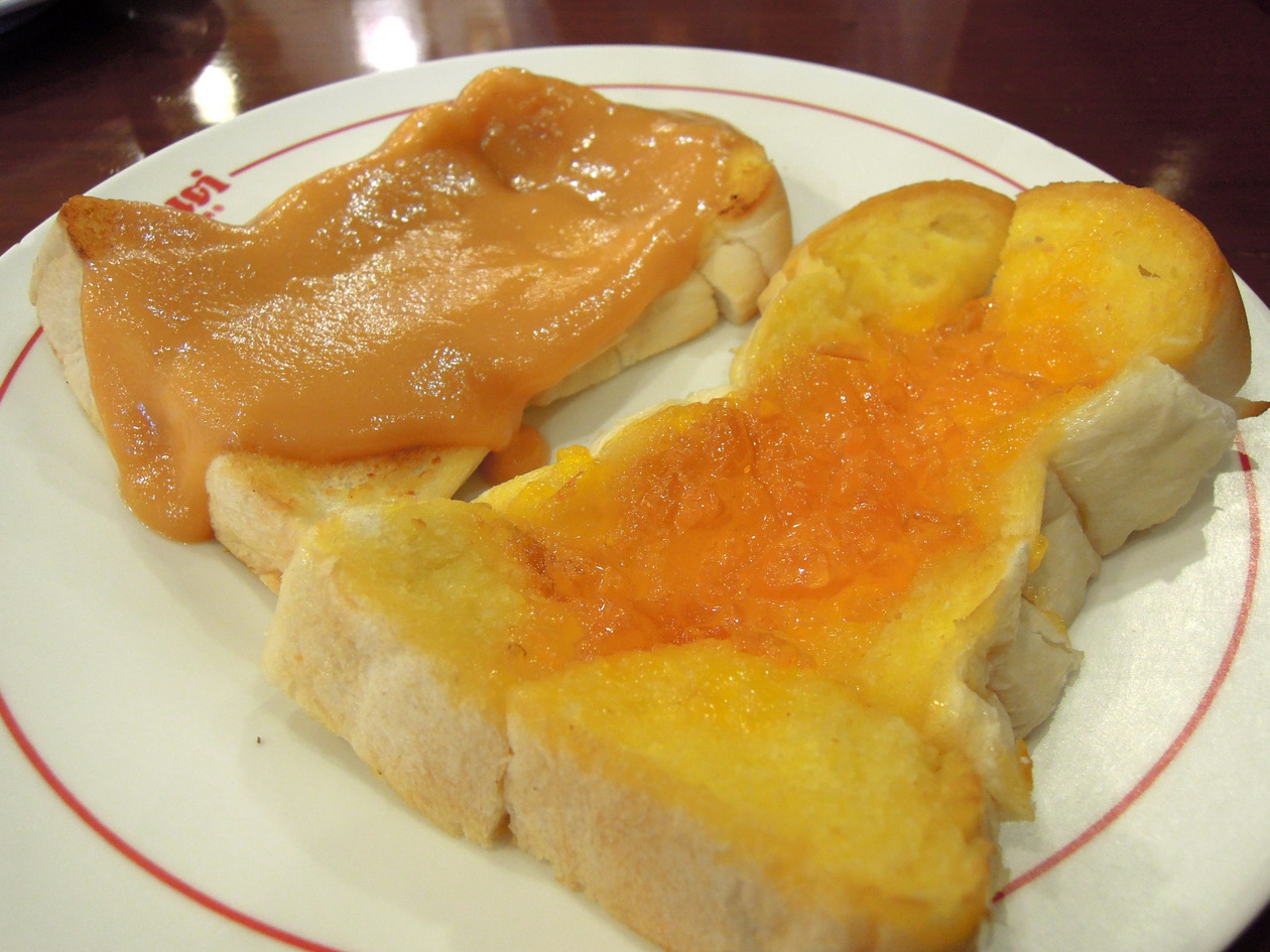 MBK支店ではスタイル重視か、トースト1枚かこの店に来てトーストを食べないというお客さんも多かったのですが、本店では2枚がスタンダード。他に土産用に4皿重ねた袋を持っていた強者も。