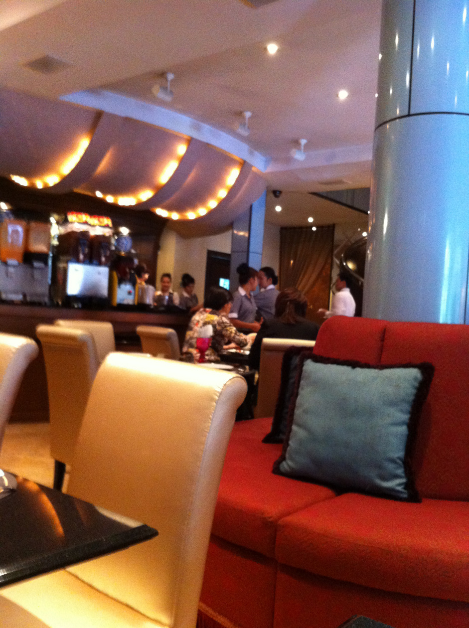 カジュアルな雰囲気で他のホテルでのアフタヌーンティーより敷居が低いけれど、カフェとしては落ち着いていてなかなかいい…と思っていたら、次々と中国人観光グループがやって来てほどなく満席。ガイドさんが声を張り上げて指示を飛ばしたり、店内他の客の客席の間をあちこち歩き回って撮影し廻る人たちであっという間に雰囲気は荒らされました。その日たまたま1組の団体さんを入れてしまったというならわかるのですが、ほとんどの客席は別団体で何組も入れて埋まっています。何組もの団体グループの予約を同日に入れる時点で、もういかがなものかと…。