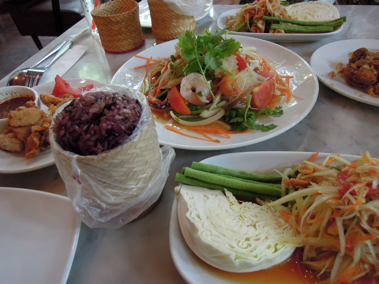 フアランポーン駅前にファーストフード店風な支店があり、ここでは写真入りのメニューが出てくるので食堂が苦手な方でも入りやすいかもしれません。支店の方は1人前の盛りつけ方が多く、その分価格も高くなっています。- 旅行時期