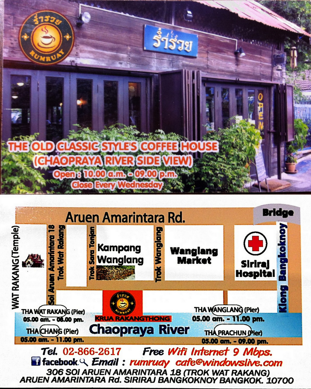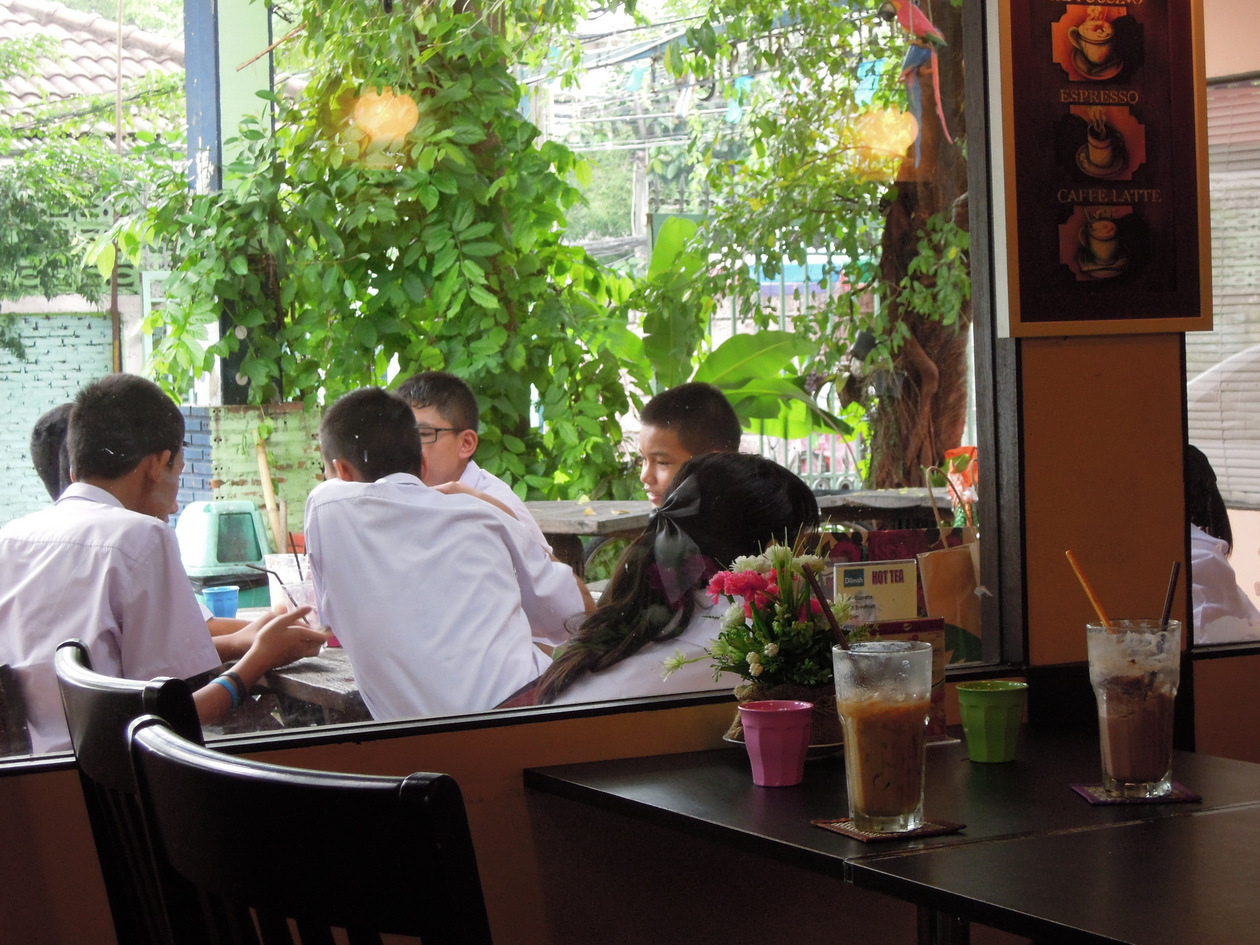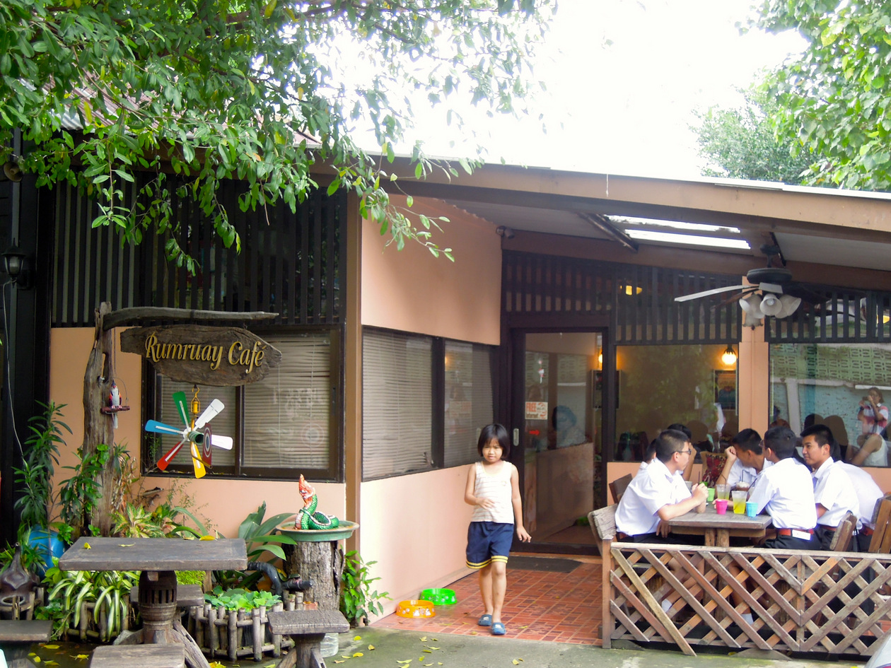 学生が集まるワンラン船着場の商店街にあるカフェです。川沿いのレストラン”クルア ラカントーン”と同じ敷地内にあります。